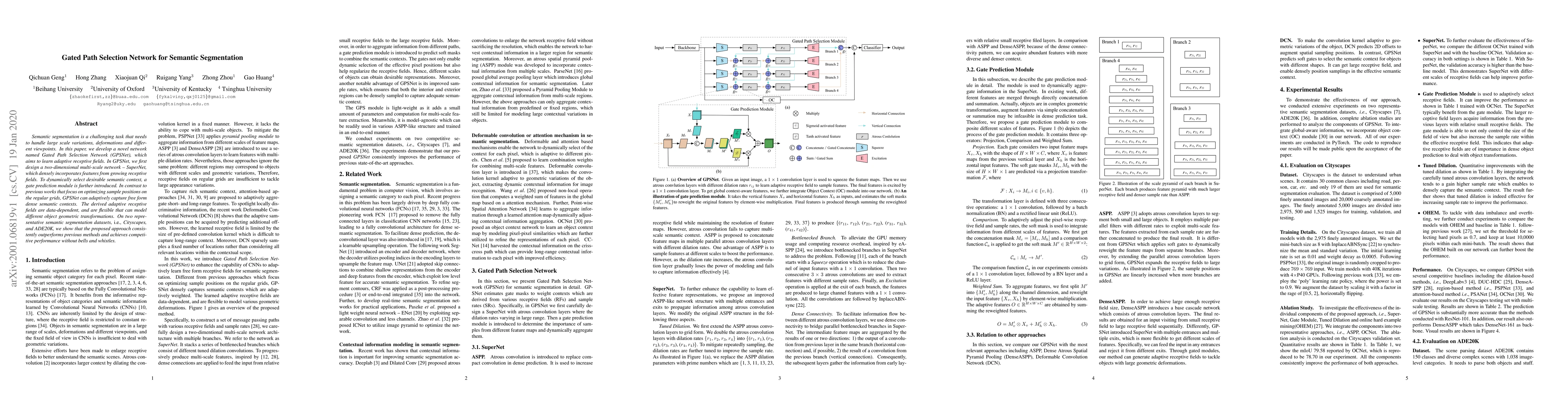 A new network called GPSNet is proposed to improve semantic segmentation accuracy by learning adaptive receptive fields, outperforming previous methods on datasets like Cityscapes and ADE20K.