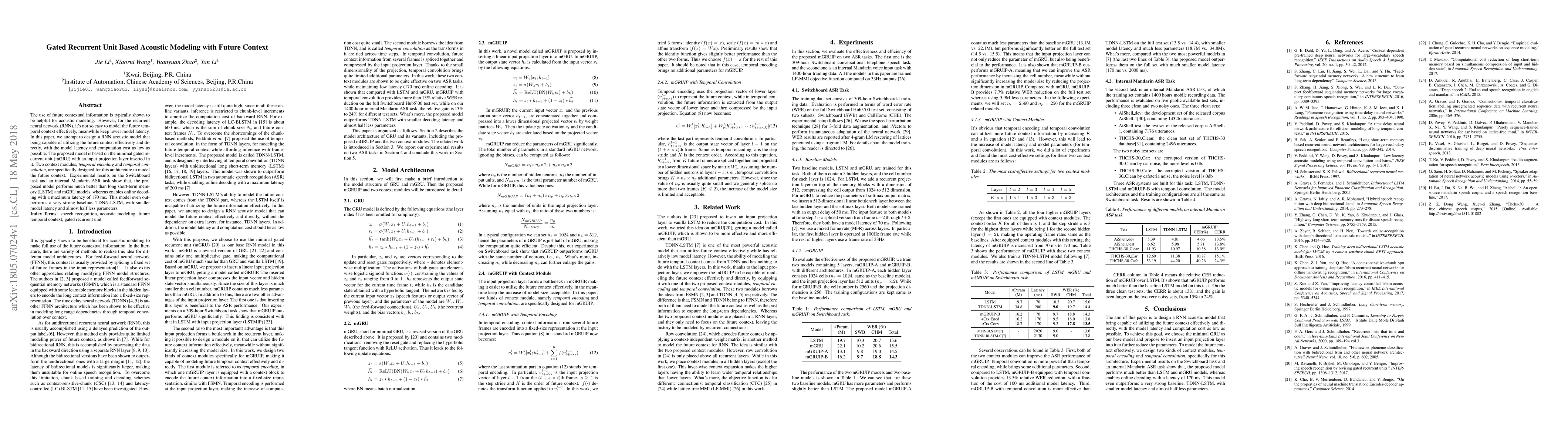 This paper proposes a minimal gated recurrent unit (mGRU) based acoustic model with future context modules to enhance performance while minimizing latency and computational cost. Experimental results demonstrate superior performance over LSTM and mGRU models, and even outperform a TDNN-LSTM baseline with lower latency and fewer parameters.