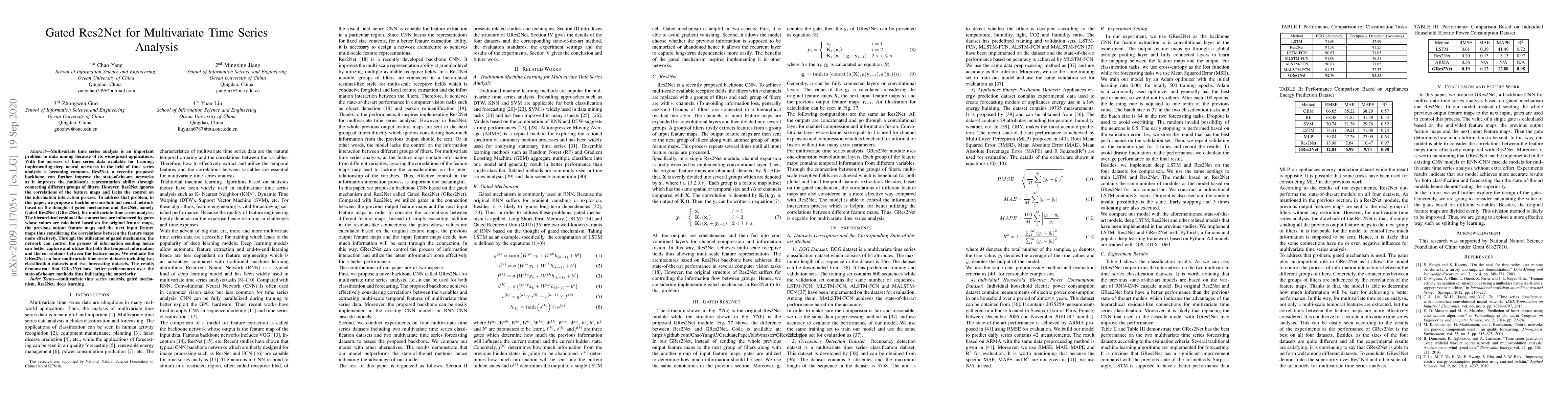 This paper proposes a Gated Res2Net (GRes2Net) for multivariate time series analysis, enhancing Res2Net with a gated mechanism to better capture temporal information and feature correlations. Experimental results on four datasets show GRes2Net outperforms state-of-the-art methods.