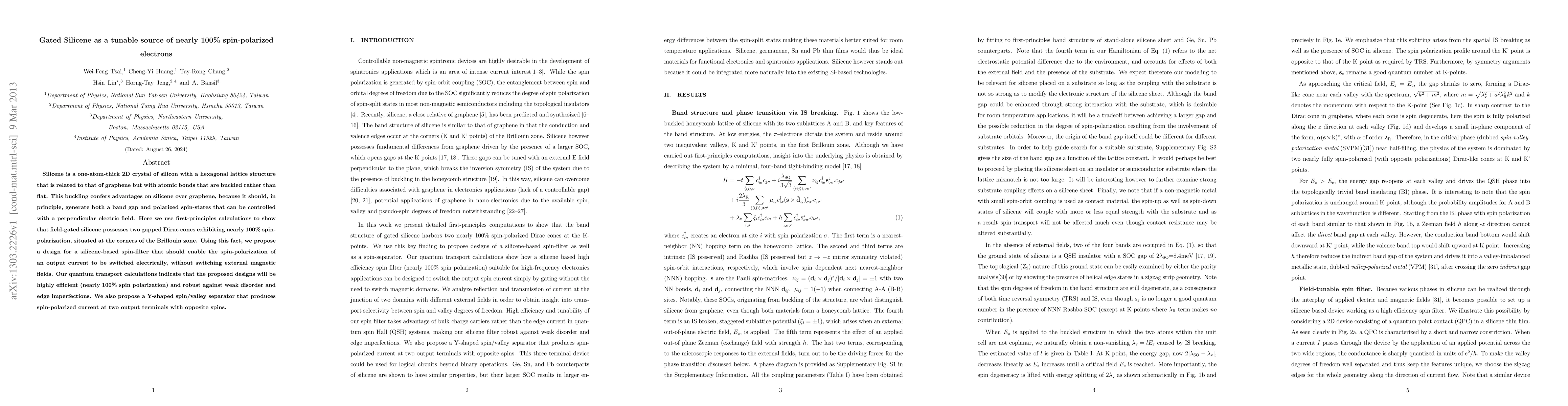 Silicene is a one-atom-thick 2D crystal of silicon with a hexagonal lattice structure that is related to that of graphene but with atomic bonds that are buckled rather than flat. This buckling confers advantages on silicene over graphene, because it should, in principle, generate both a band gap and polarized spin-states that can be controlled with a perpendicular electric field. Here we use first-principles calculations to show that field-gated silicene possesses two gapped Dirac cones exhibiting nearly 100% spin-polarization, situated at the corners of the Brillouin zone. Using this fact, we propose a design for a silicene-based spin-filter that should enable the spin-polarization of an output current to be switched electrically, without switching external magnetic fields. Our quantum transport calculations indicate that the proposed designs will be highly efficient (nearly 100% spin polarization) and robust against weak disorder and edge imperfections. We also propose a Y-shaped spin/valley separator that produces spin-polarized current at two output terminals with opposite spins.
