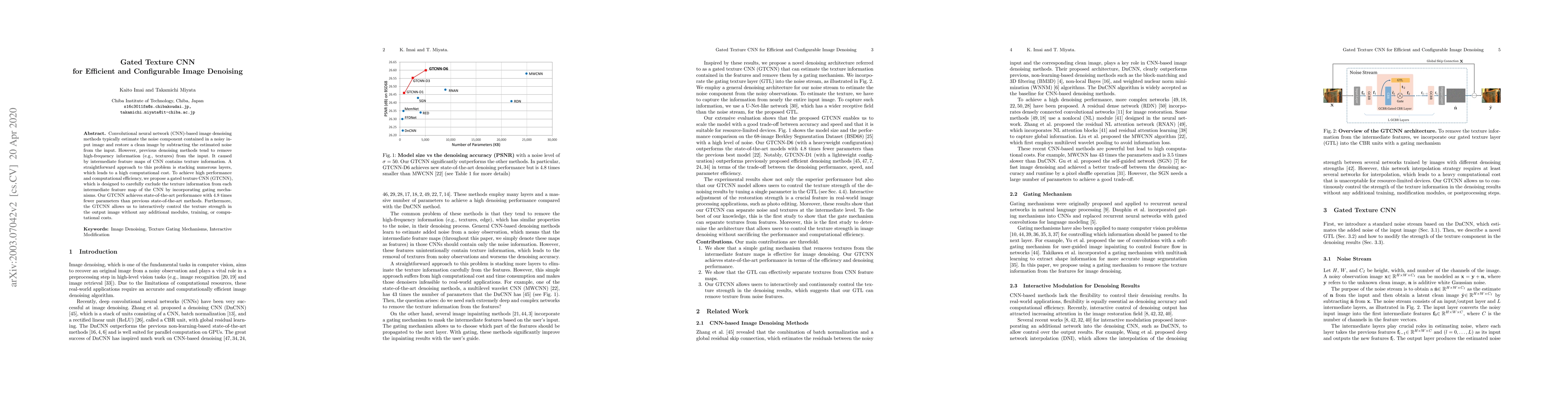 The paper proposes a Gated Texture CNN (GTCNN) for efficient image denoising, which uses gating mechanisms to exclude texture information from intermediate feature maps, achieving state-of-the-art performance with significantly fewer parameters and allowing configurable texture strength in the output.