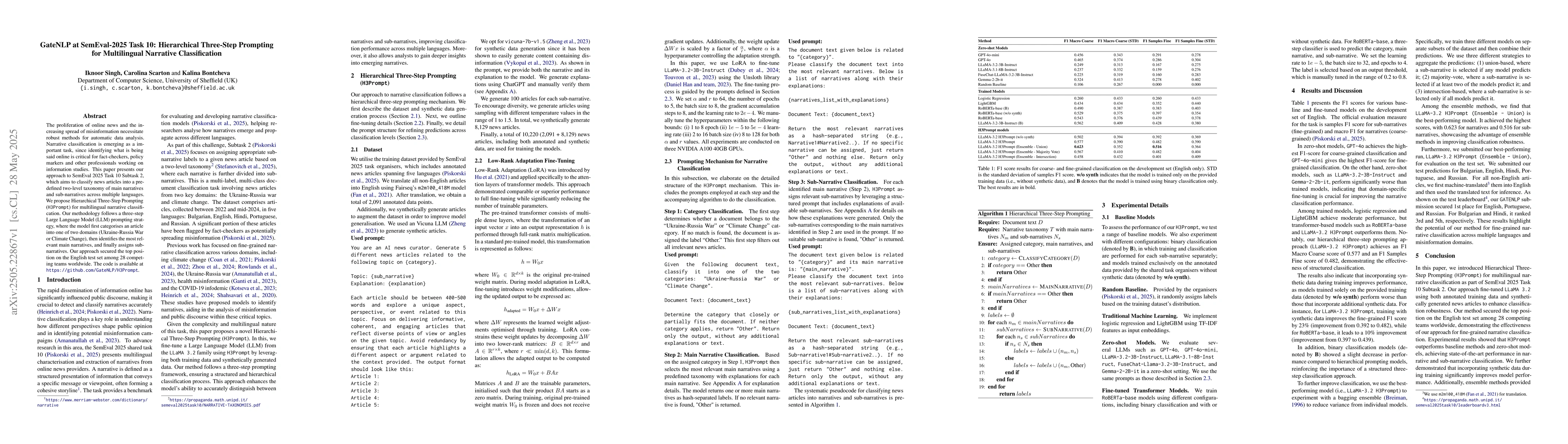 Hierarchical Three-Step Prompting (H3Prompt), a three-step LLM prompting strategy for multilingual narrative classification.