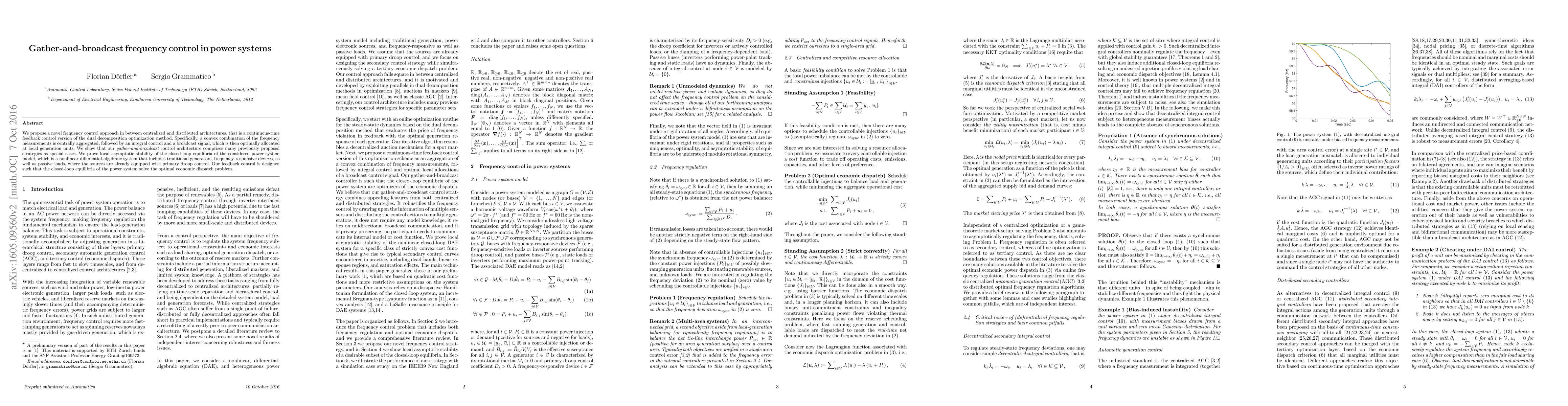 A new frequency control approach combines centralized and distributed architectures to optimize power system stability and economic dispatch. It achieves local asymptotic stability of closed-loop equilibria while solving the optimal economic dispatch problem.