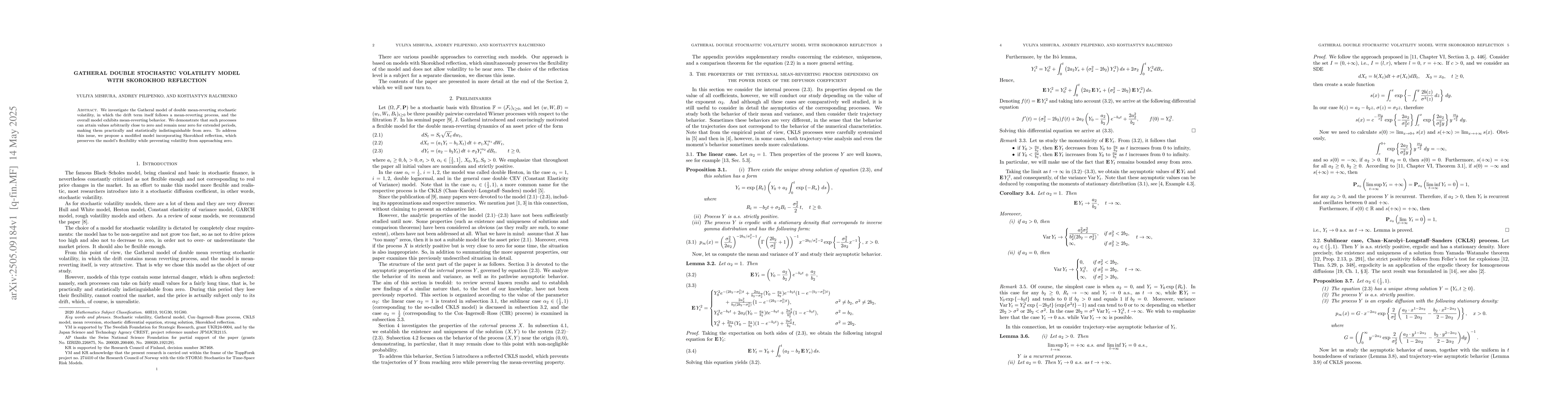 The research investigates the Gatheral model of double mean-reverting stochastic volatility, proposing a modification using Skorokhod reflection.