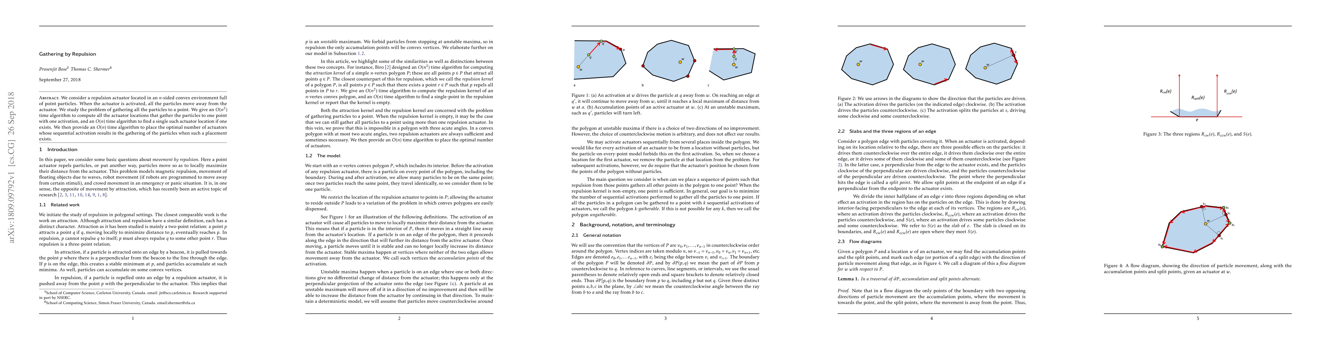 This paper solves a problem where particles move away from an actuator in a convex environment when activated; it provides algorithms to gather the particles in $O(n^2)$, $O(n)$, and $O(n)$ time.
