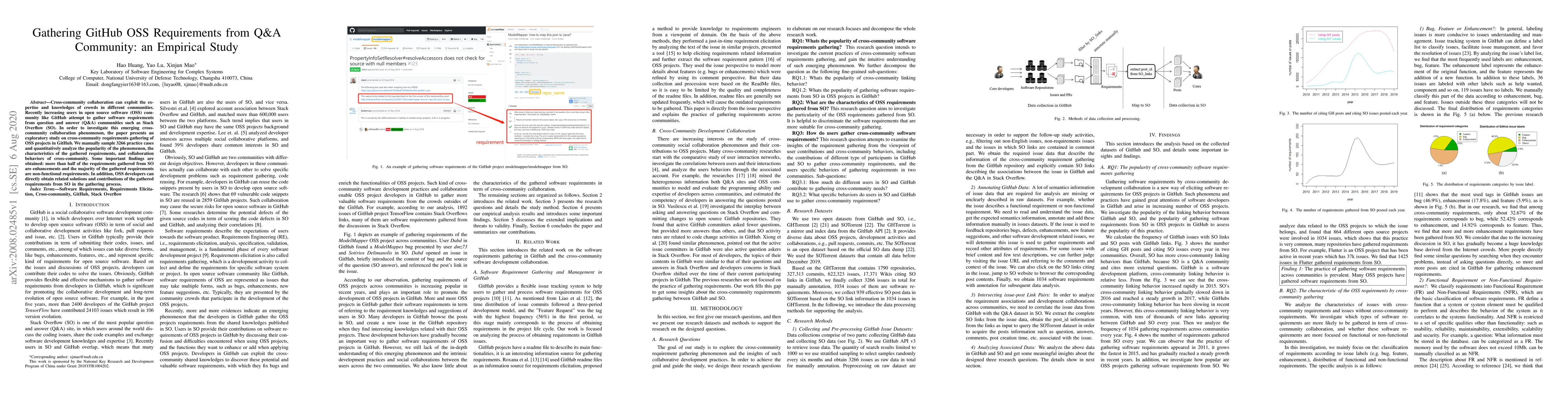 This study explores how open source software (OSS) projects on GitHub gather requirements from Q&A communities like Stack Overflow. Findings show that over half of the requirements are enhancements, and most are non-functional, with developers directly obtaining solutions and contributions from these external communities.