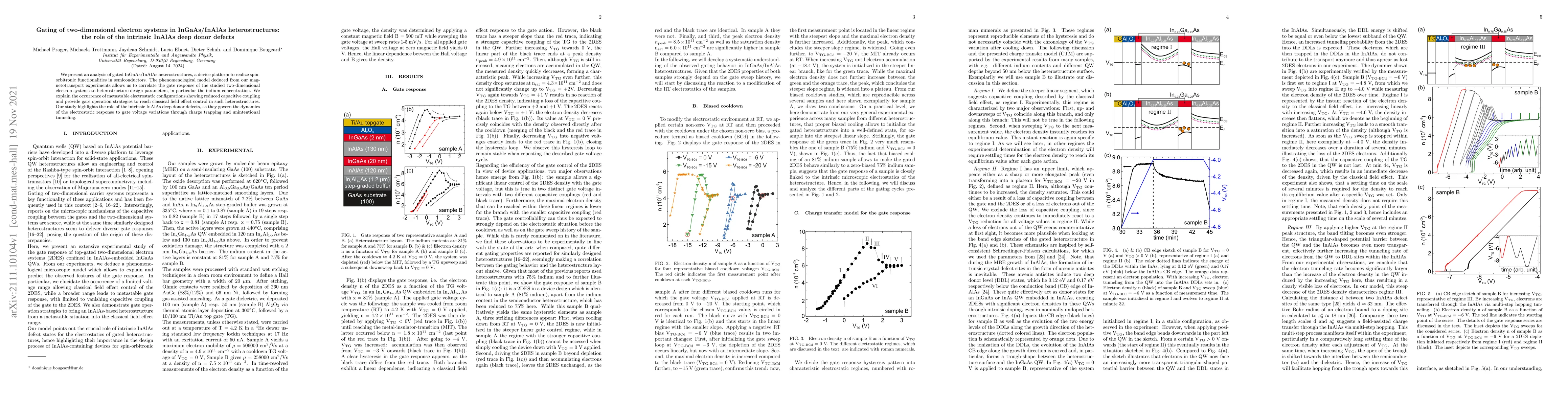 This paper analyzes gated InGaAs/InAlAs heterostructures, revealing how intrinsic InAlAs deep donor defects influence the electrostatic response and capacitive coupling. The study proposes strategies for achieving classical field effect control, emphasizing the role of these defects in charge trapping and unintentional tunneling.