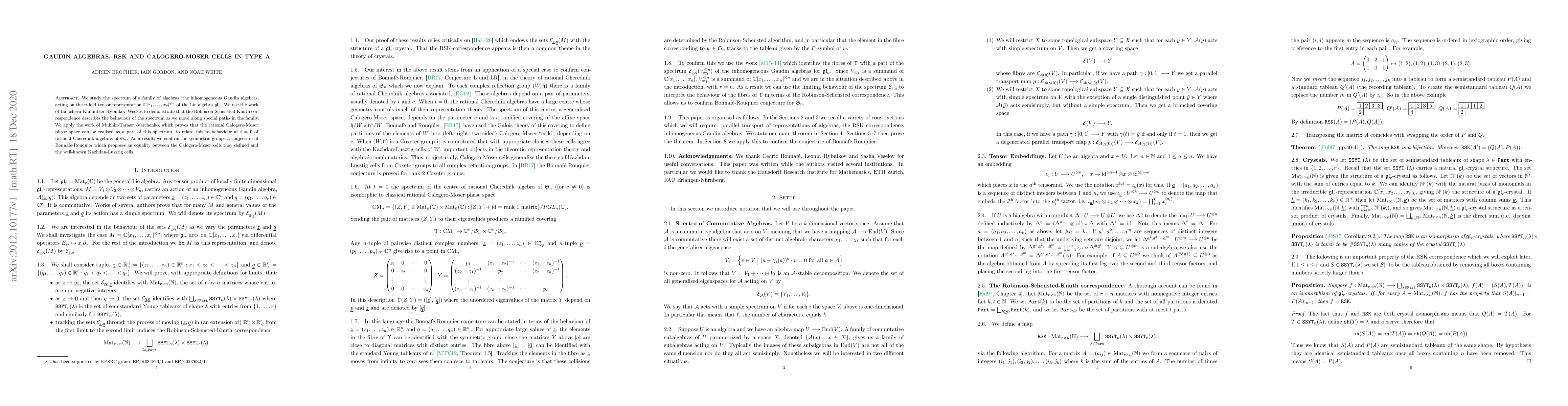 This paper explores the spectrum of inhomogeneous Gaudin algebras acting on tensor representations of $\mathfrak{gl}_r$. It uses the Robinson-Schensted-Knuth correspondence to describe spectral behavior and connects it to Calogero-Moser cells, confirming a conjecture linking these to Kazhdan-Lusztig cells for symmetric groups.