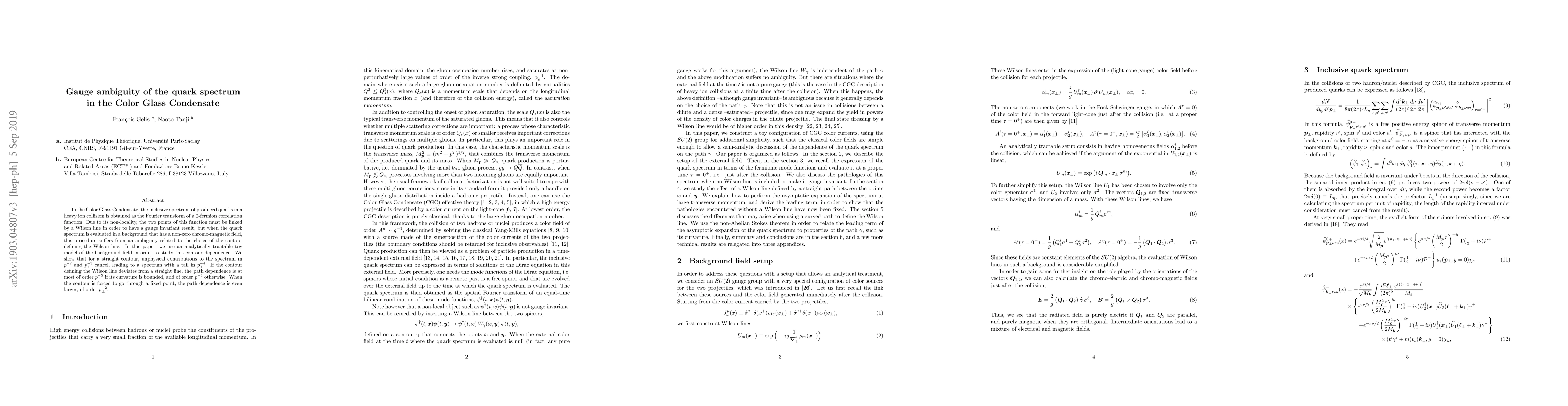 In the Color Glass Condensate, the inclusive spectrum of produced quarks in a heavy ion collision is obtained as the Fourier transform of a $2$-fermion correlation function. Due to its non-locality, the two points of this function must be linked by a Wilson line in order to have a gauge invariant result, but when the quark spectrum is evaluated in a background that has a non-zero chromo-magnetic field, this procedure suffers from an ambiguity related to the choice of the contour defining the Wilson line. In this paper, we use an analytically tractable toy model of the background field in order to study this contour dependence. We show that for a straight contour, unphysical contributions to the spectrum in $p_\perp^{-2}$ and $p_\perp^{-3}$ cancel, leading to a spectrum with a tail in $p_\perp^{-4}$. If the contour defining the Wilson line deviates from a straight line, the path dependence is at most of order $p_\perp^{-5}$ if its curvature is bounded, and of order $p_\perp^{-4}$ otherwise. When the contour is forced to go through a fixed point, the path dependence is even larger, of order $p_\perp^{-2}$.