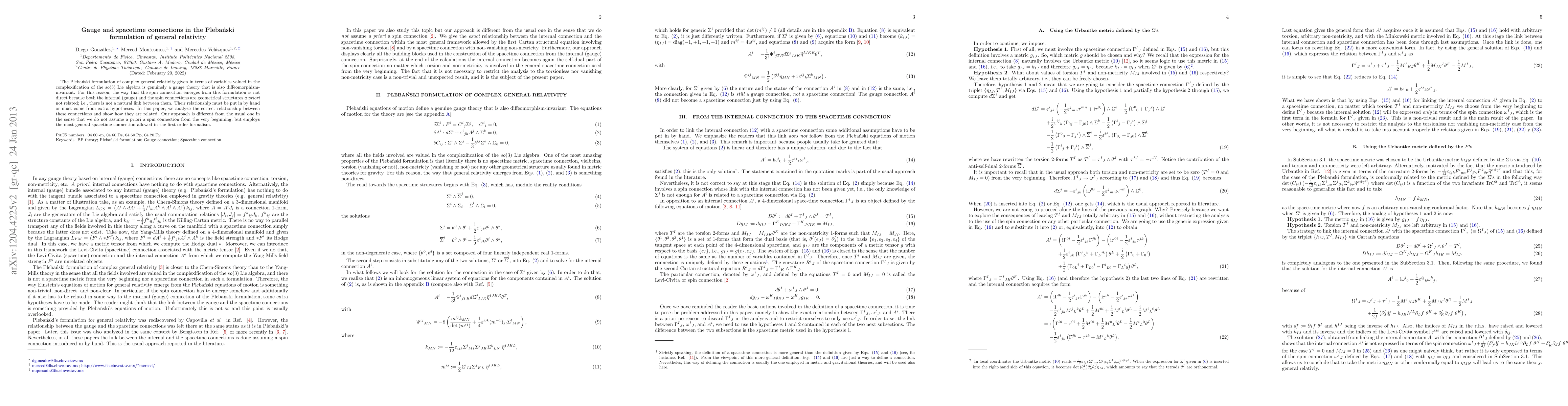This paper explores the Plebanski formulation of complex general relativity, highlighting its gauge-theoretic and diffeomorphism-invariant nature. It investigates the relationship between the internal gauge and spacetime connections, demonstrating how they can be linked despite their a priori independence.
