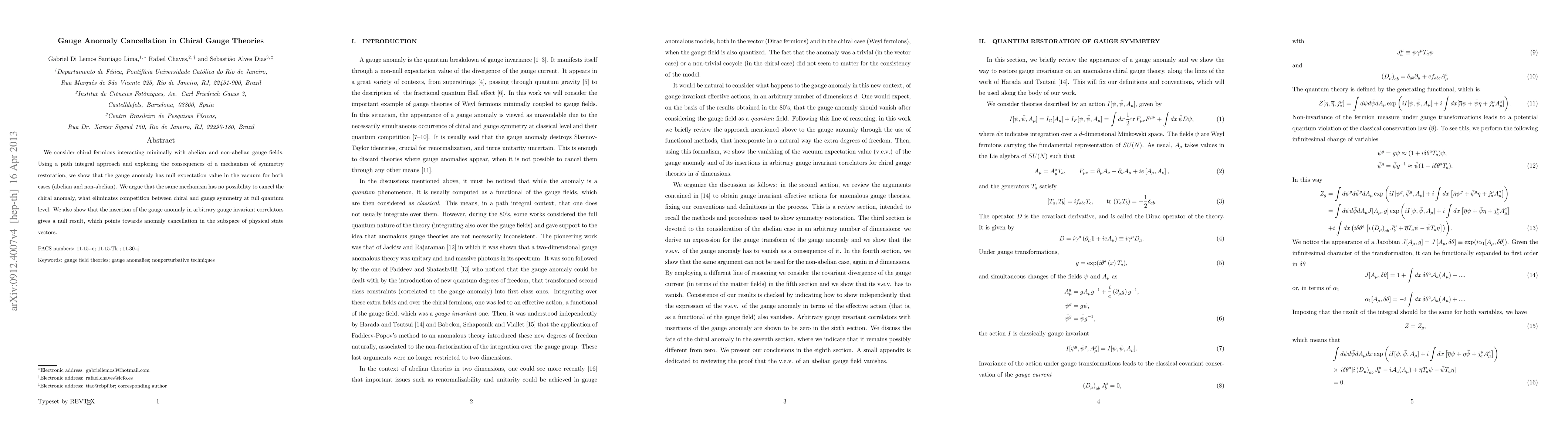 We consider chiral fermions interacting minimally with abelian and non-abelian gauge fields. Using a path integral approach and exploring the consequences of a mechanism of symmetry restoration, we show that the gauge anomaly has null expectation value in the vacuum for both cases (abelian and non-abelian). We argue that the same mechanism has no possibility to cancel the chiral anomaly, what eliminates competition between chiral and gauge symmetry at full quantum level. We also show that the insertion of the gauge anomaly in arbitrary gauge invariant correlators gives a null result, which points towards anomaly cancellation in the subspace of physical state vectors.