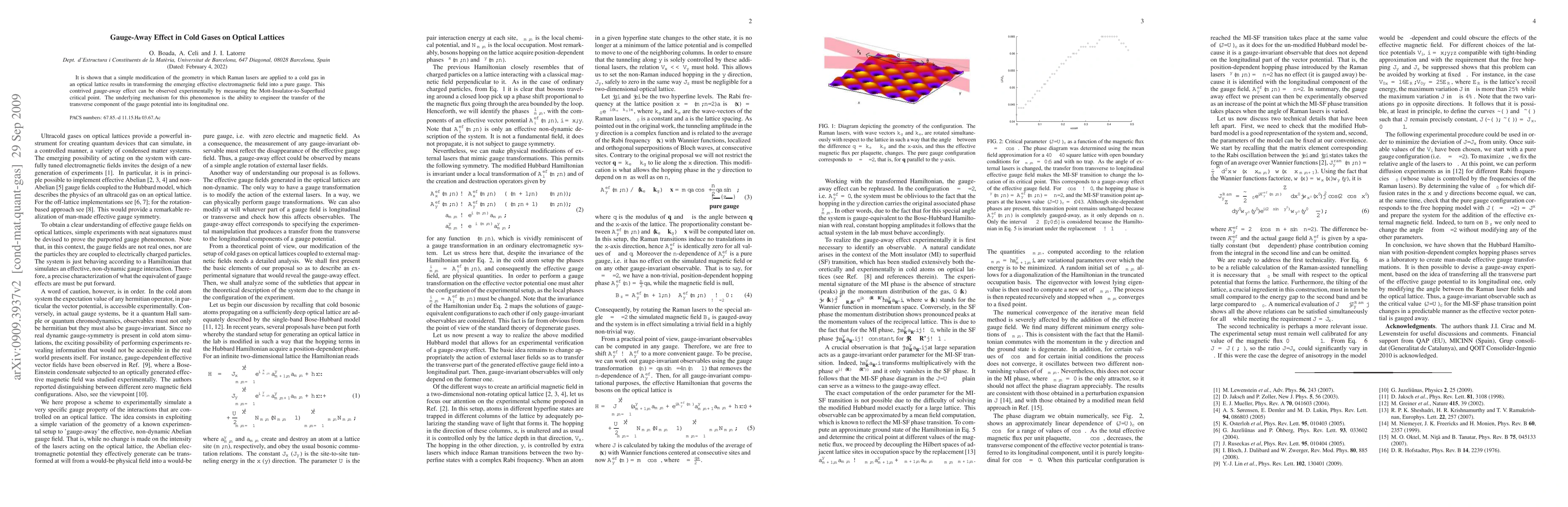 It is shown that a simple modification of the geometry in which Raman lasers are applied to a cold gas in an optical lattice results in transforming the emerging effective electromagnetic field into a pure gauge. This contrived gauge-away effect can be observed experimentally by measuring the Mott-Insulator to Superfluid critical point. The underlying mechanism for this phenomenon is the ability to engineer the transfer of the transverse component of the gauge potential into its longitudinal one.