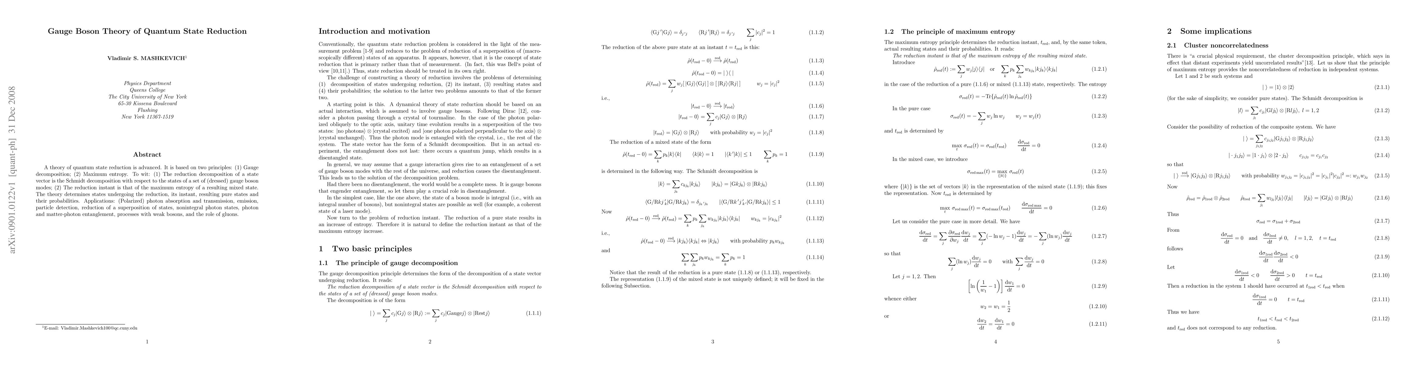 The research advances a theory of quantum state reduction based on gauge decomposition and maximum entropy principles.