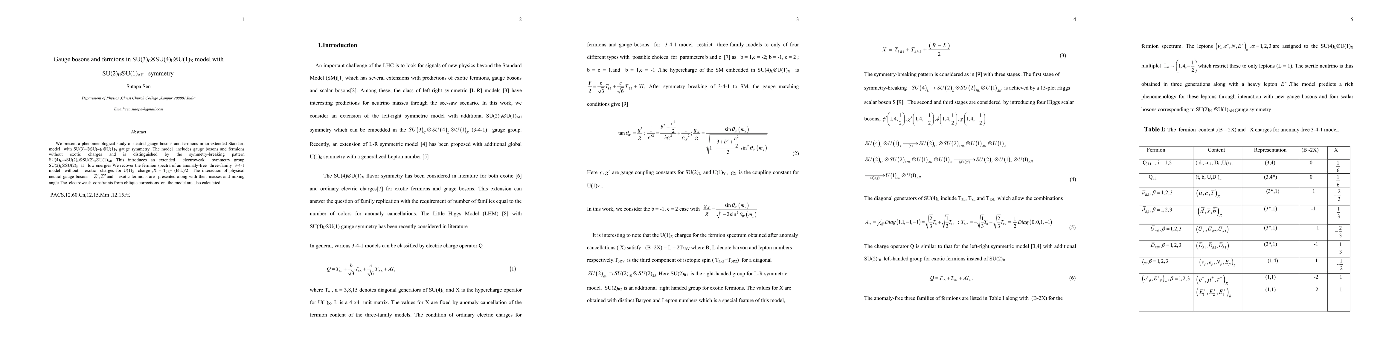 The research presents a phenomenological study of neutral gauge bosons and fermions in an extended Standard Model with SU(3)C x SU(4)L x U(1)X gauge symmetry, focusing on the symmetry-breaking pattern SU(4)L -> SU(2)L x SU(2)H x U(1)AH.