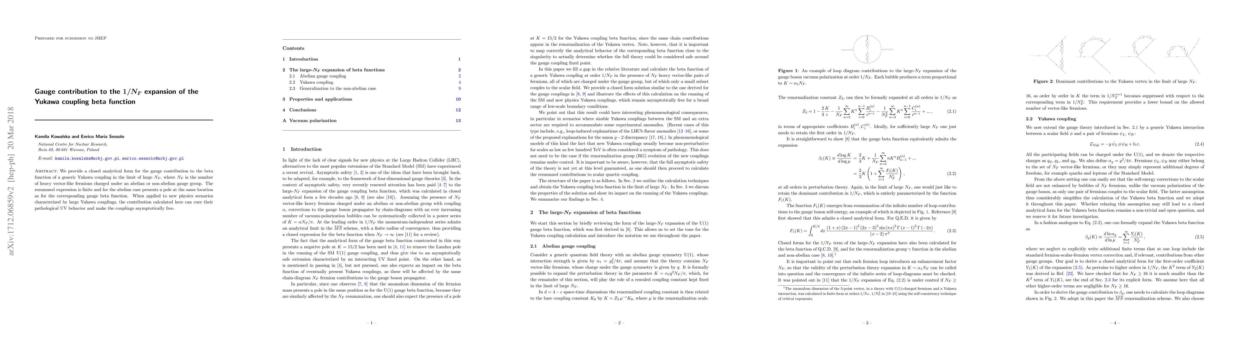 Summary: The paper presents a closed analytical form for the gauge contribution to the Yukawa coupling beta function in the large $N_F$ limit, which corrects the ultraviolet behavior and ensures asymptotic freedom for large Yukawa couplings in new physics scenarios. The expression is finite and exhibits a pole in the abelian case similar to the gauge beta function.