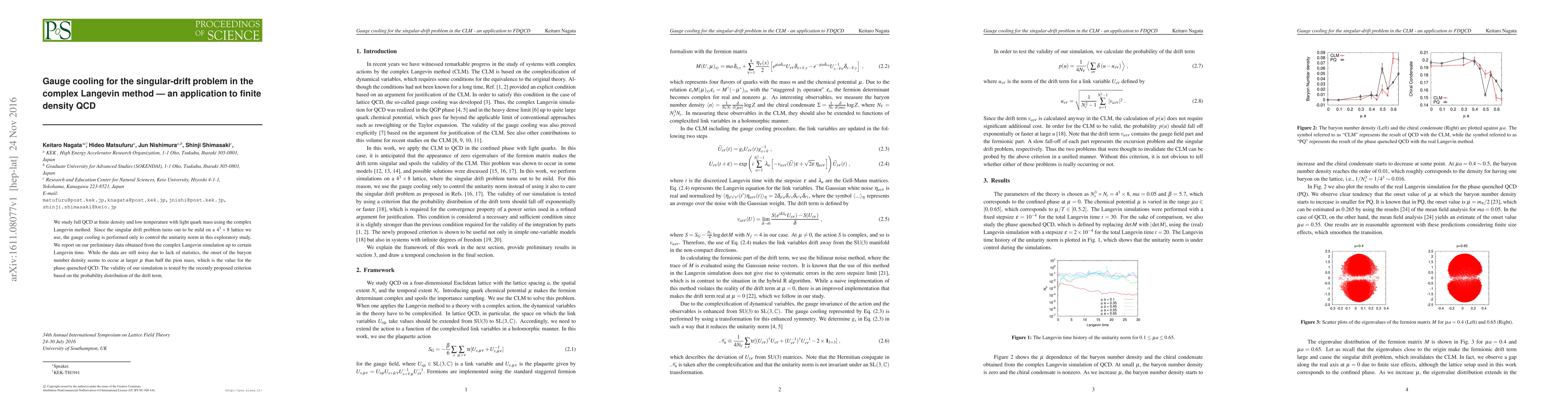 This paper explores full QCD at finite density and low temperature using the complex Langevin method, focusing on the singular-drift problem. Gauge cooling is applied to manage the unitarity norm, and preliminary data suggest baryon number density onset occurs at a higher chemical potential than in phase quenched QCD, though the results remain noisy due to limited statistics.