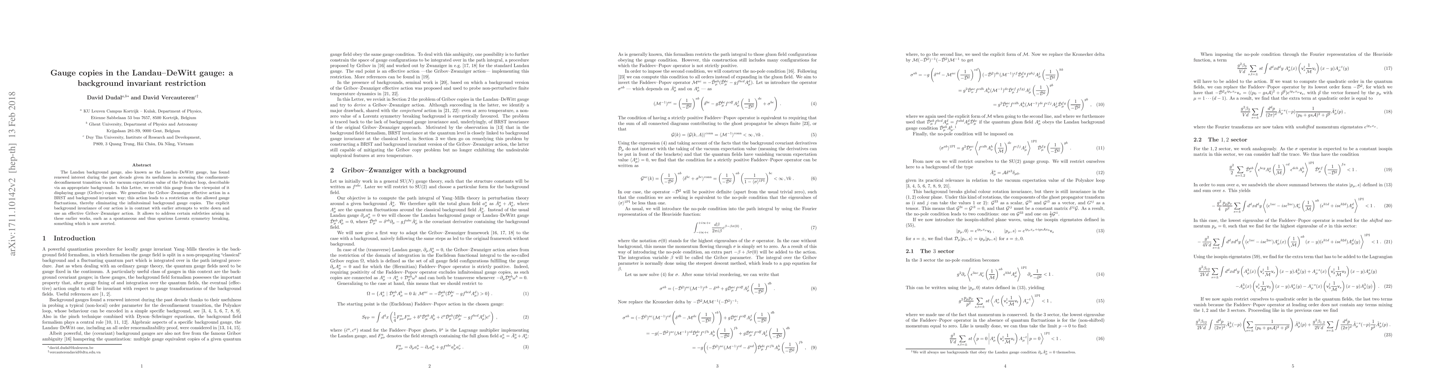 This paper revisits the Landau-DeWitt gauge, highlighting its role in studying confinement-deconfinement transitions. It generalizes the Gribov-Zwanziger effective action in a BRST and background invariant manner, leading to a restriction that eliminates infinitesimal gauge copies and avoids spurious Lorentz symmetry breaking.