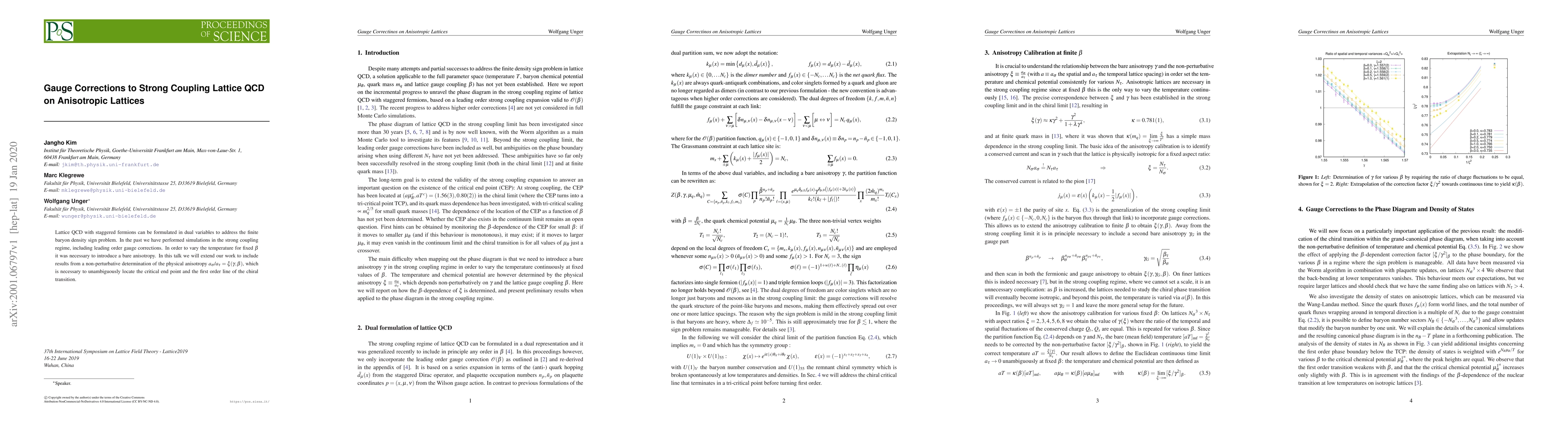 Lattice QCD with staggered fermions can be formulated in dual variables to address the finite baryon density sign problem. In the past we have performed simulations in the strong coupling regime, including leading order gauge corrections. In order to vary the temperature for fixed $\beta$ it was necessary to introduce a bare anisotropy. In this talk we will extend our work to include results from a non-perturbative determination of the physical anisotropy $a_\sigma$/$a_\tau = \xi(\gamma, \beta)$, which is necessary to unambiguously locate the critical end point and the first order line of the chiral transition.