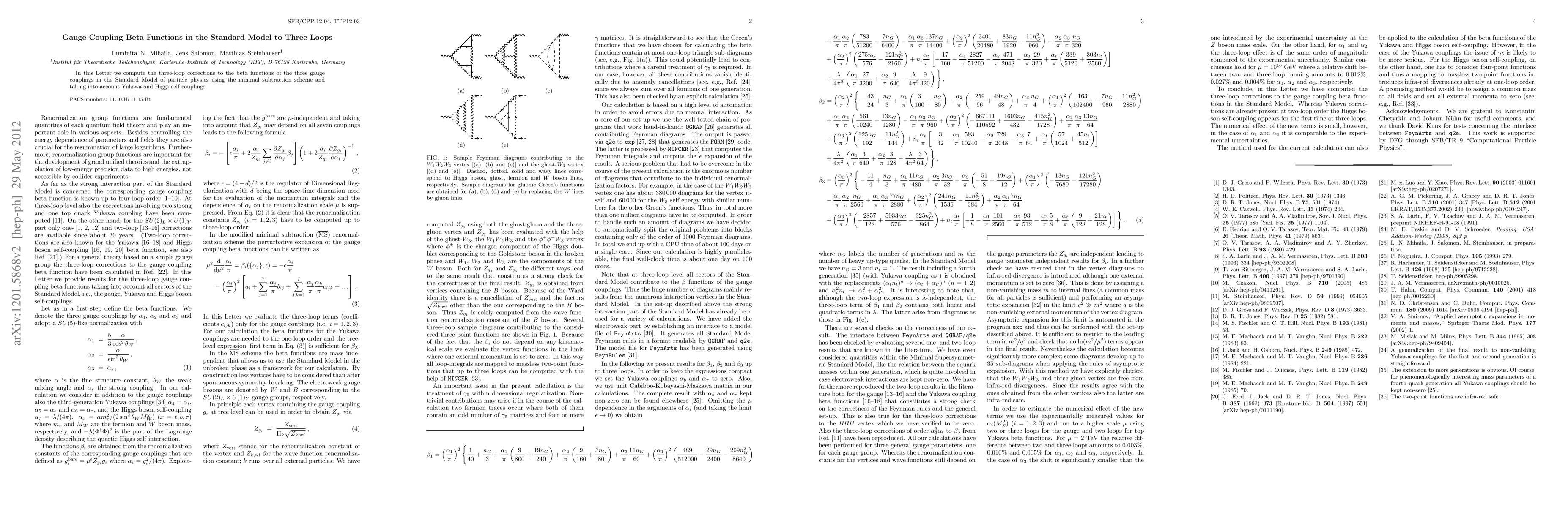 Summary: This research paper calculates the three-loop corrections to the beta functions for the three gauge couplings in the Standard Model, employing the minimal subtraction scheme and considering contributions from Yukawa and Higgs self-couplings. These calculations enhance the precision of the model's predictive capabilities.