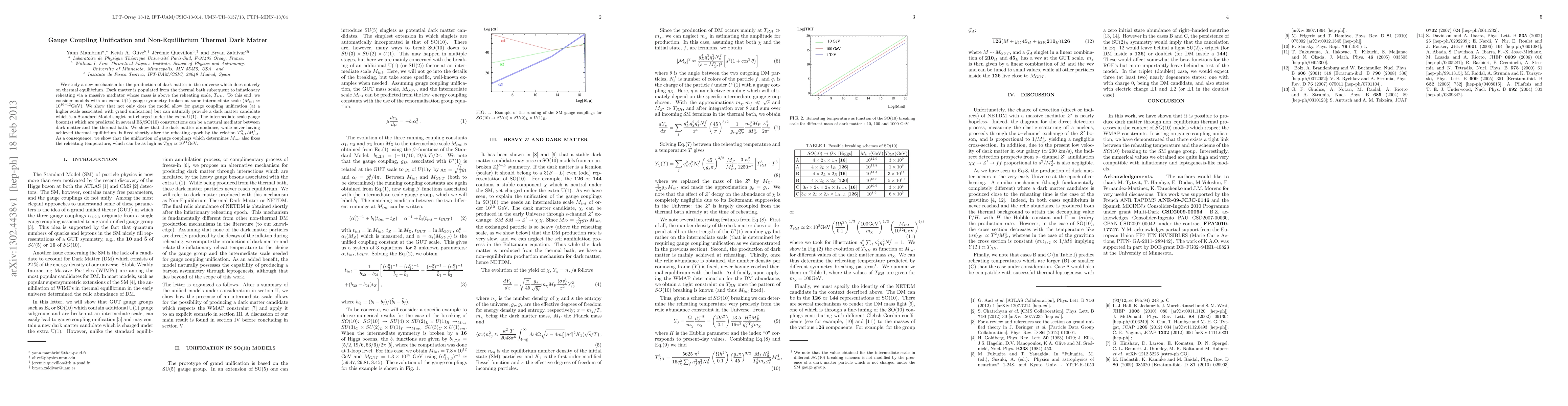 This paper explores a non-equilibrium mechanism for dark matter production post-inflation, mediated by a massive gauge boson beyond the reheating scale. It demonstrates that such a model can achieve gauge coupling unification and naturally produce dark matter as a Standard Model singlet charged under an extra U(1) symmetry, with the dark matter abundance determined by the reheating temperature and the intermediate scale gauge boson mass.