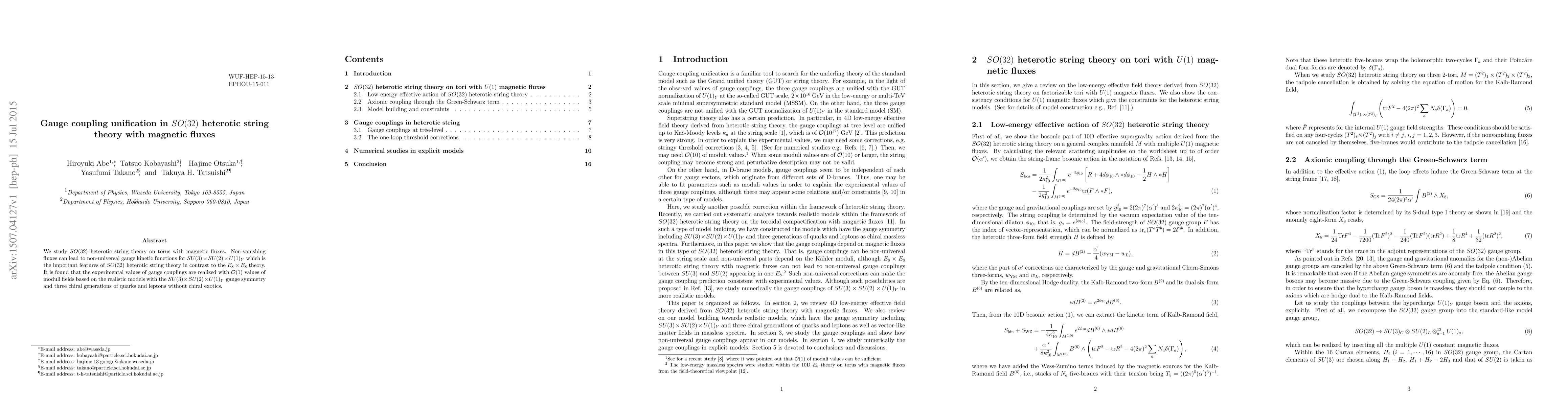 Summary: This research explores $SO(32)$ heterotic string theory with magnetic fluxes, demonstrating that non-universal gauge kinetic functions can emerge, allowing gauge coupling unification to align with experimental values using realistic models featuring the Standard Model gauge symmetry and three generations of quarks and leptons.