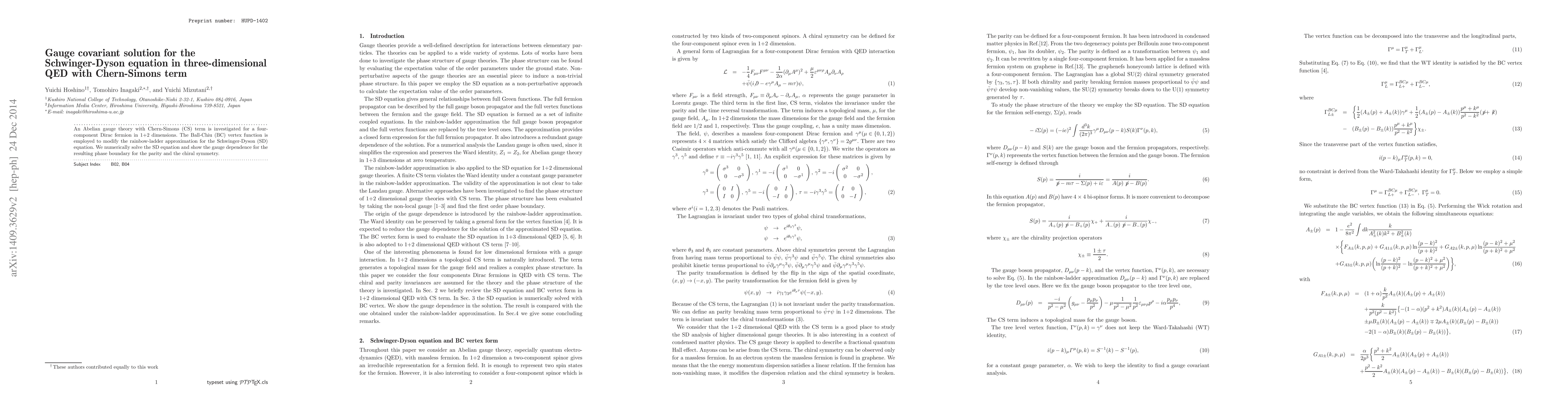 This paper investigates an Abelian gauge theory in 1+2 dimensions with a Chern-Simons term, using the Ball-Chiu vertex function to modify the rainbow-ladder approximation for the Schwinger-Dyson equation. The study reveals the gauge dependence of the phase boundary for parity and chiral symmetry.