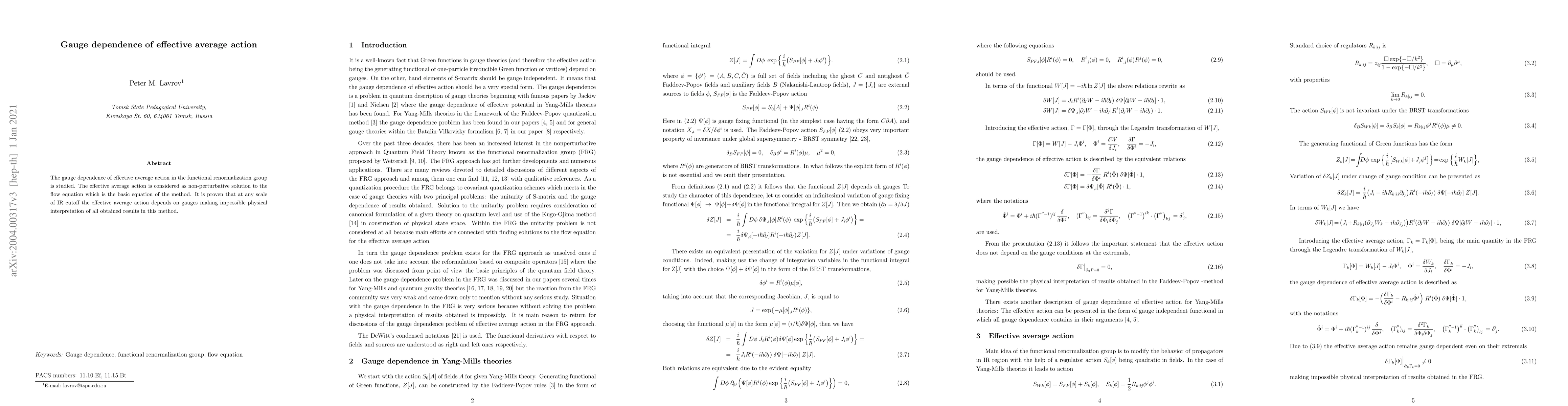 This paper investigates the gauge dependence of the effective average action within the functional renormalization group, demonstrating that it varies with different gauges, thus complicating the physical interpretation of results obtained from this method.