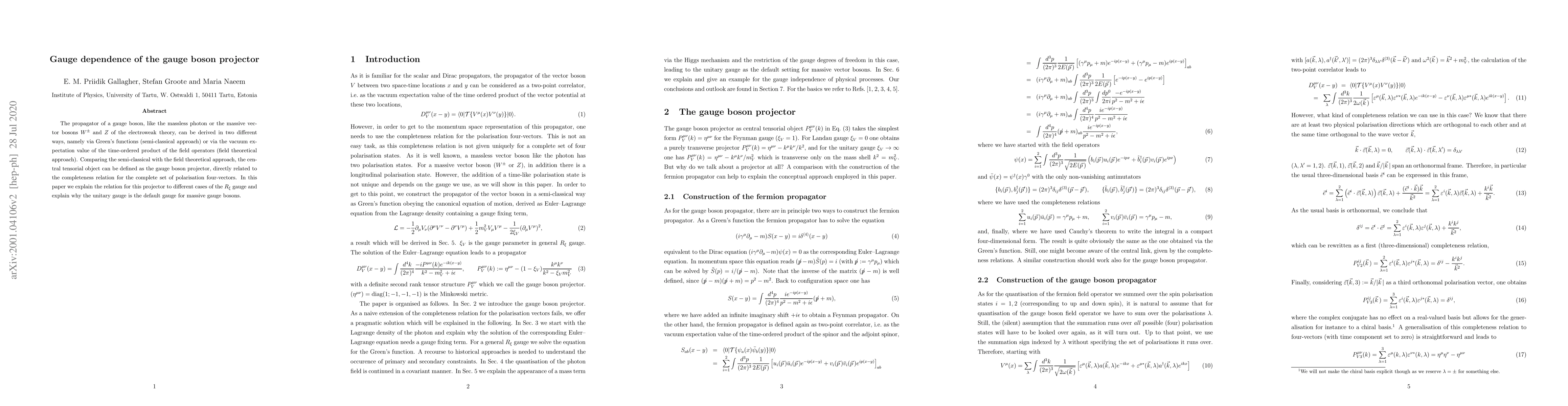 The propagator of a gauge boson, like the massless photon or the massive vector bosons $W^\pm$ and $Z$ of the electroweak theory, can be derived in two different ways, namely via Green's functions (semi-classical approach) or via the vacuum expectation value of the time-ordered product of the field operators (field theoretical approach). Comparing the semi-classical with the field theoretical approach, the central tensorial object can be defined as the gauge boson projector, directly related to the completeness relation for the complete set of polarisation four-vectors. In this paper we explain the relation for this projector to different cases of the $R_\xi$ gauge and explain why the unitary gauge is the default gauge for massive gauge bosons.