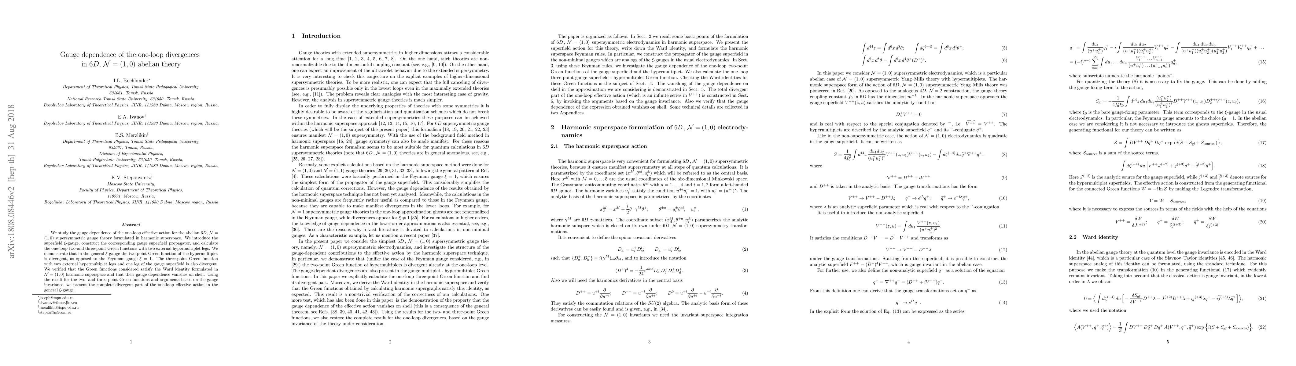 This paper investigates the gauge dependence of one-loop divergences in a $6D$, ${\cal N}=(1,0)$ abelian supersymmetric gauge theory using harmonic superspace. It demonstrates that two- and three-point Green functions with hypermultiplet legs are divergent in the general $\xi$-gauge, unlike in the Feynman gauge, and verifies their gauge invariance on shell.