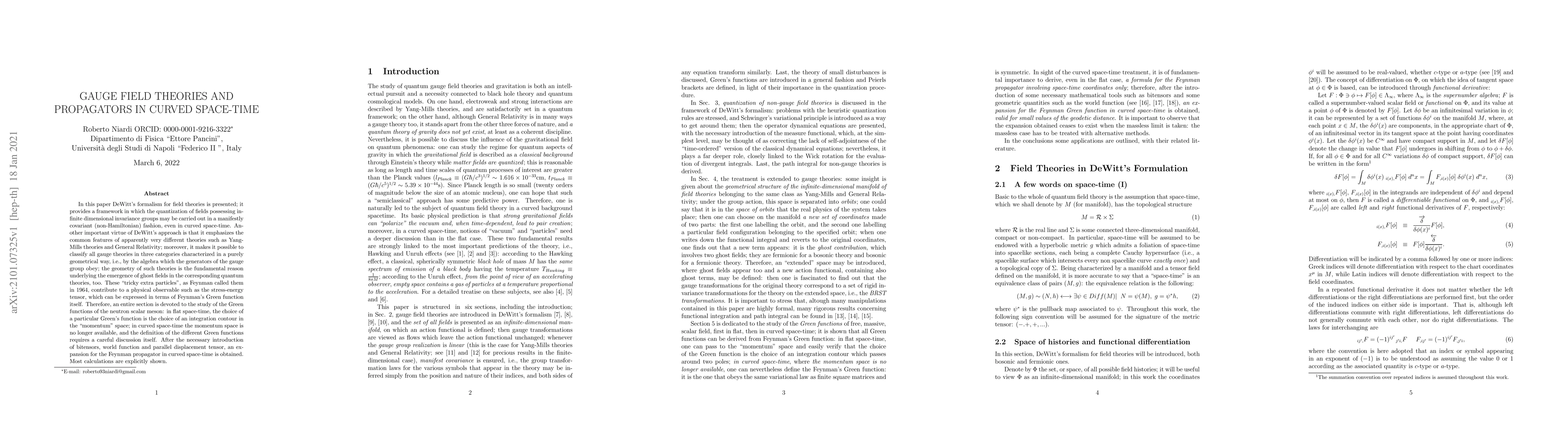 This paper utilizes DeWitt's formalism to quantize gauge fields in curved space-time, emphasizing the covariant treatment of infinite dimensional invariance groups. It classifies gauge theories geometrically and discusses the emergence of ghost fields, focusing on the Green functions and Feynman propagators in both flat and curved space-time.
