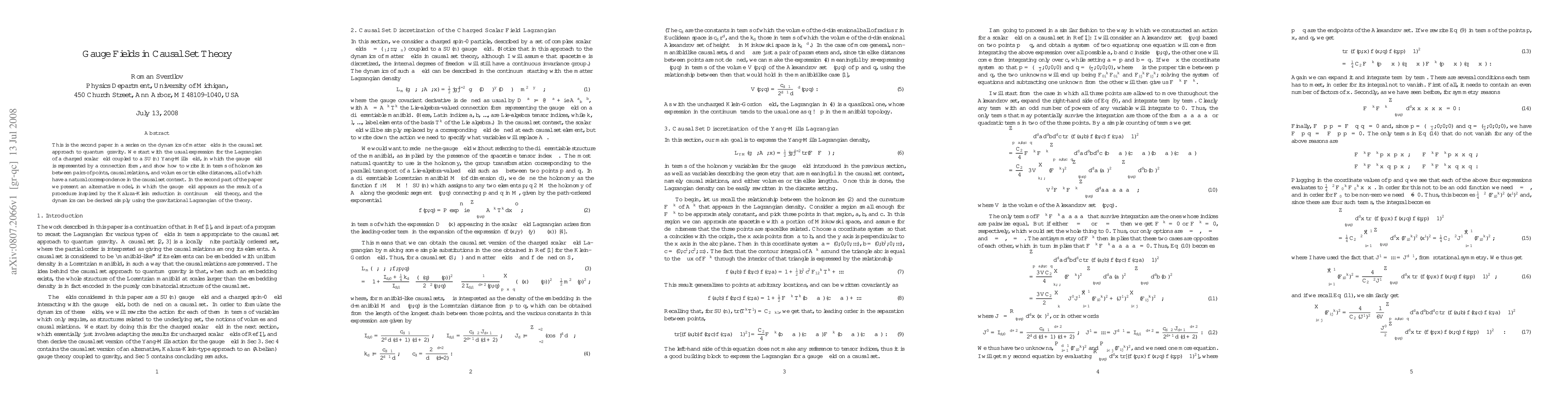 This is the second paper in a series on the dynamics of matter fields in the causal set approach to quantum gravity. We start with the usual expression for the Lagrangian of a charged scalar field coupled to a SU(n) Yang-Mills field, in which the gauge field is represented by a connection form, and show how to write it in terms of holonomies between pairs of points, causal relations, and volumes or timelike distances, all of which have a natural correspondence in the causal set context. In the second part of the paper we present an alternative model, in which the gauge field appears as the result of a procedure inspired by the Kaluza-Klein reduction in continuum field theory, and the dynamics can be derived simply using the gravitational Lagrangian of the theory.