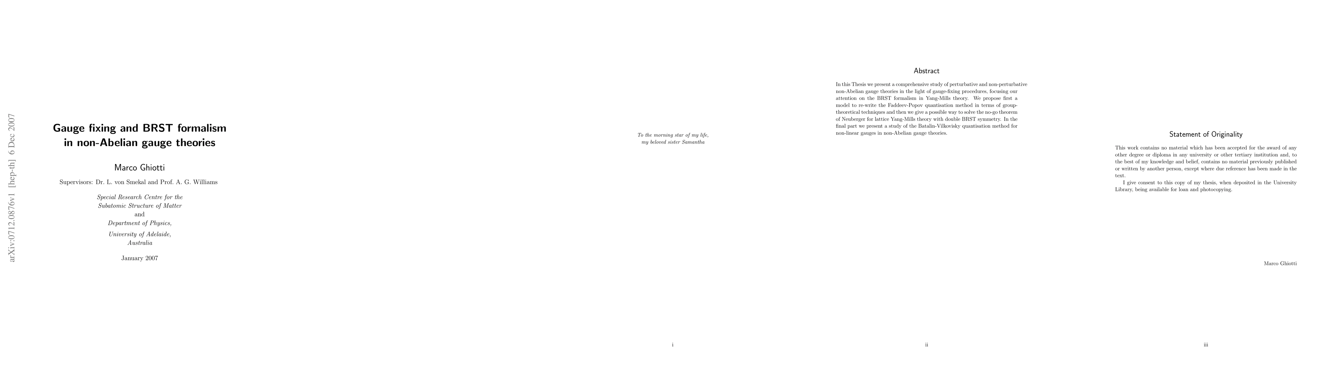 This paper explores gauge-fixing methods in non-Abelian gauge theories, focusing on the BRST formalism in Yang-Mills theory. It proposes a new group-theoretical approach to the Faddeev-Popov quantization method and resolves Neuberger's no-go theorem in lattice Yang-Mills theory using double BRST symmetry. The study concludes with an examination of the Batalin-Vilkovisky quantization method for non-linear gauges.