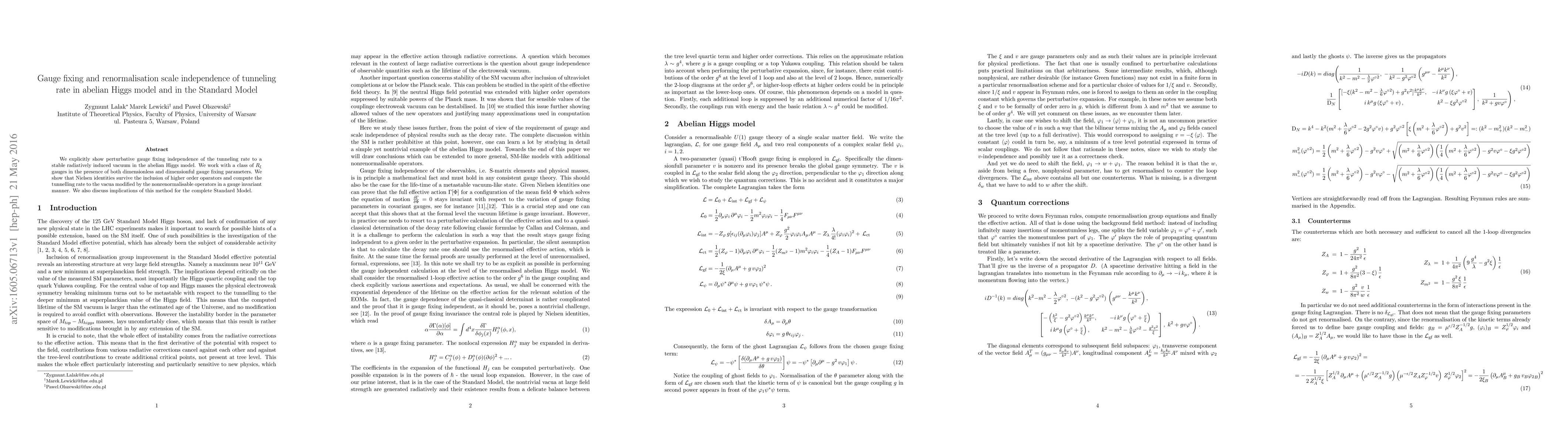 This paper demonstrates that the tunneling rate in the abelian Higgs model is gauge fixing independent, allowing for a consistent calculation across different gauges. This finding has implications for the Standard Model, enabling a gauge invariant computation of the tunneling rate with non-renormalizable operators.