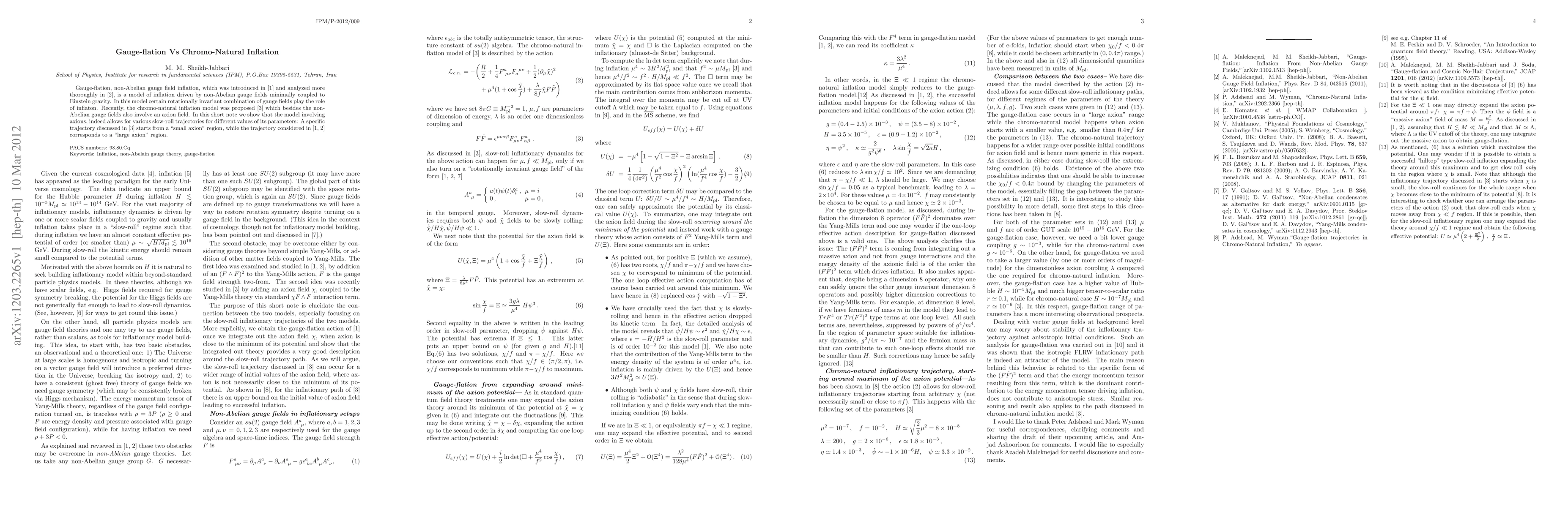 Gauge-flation, non-Abelian gauge field inflation, which was introduced in arXiv:1102.1513 and analyzed more thoroughly in arXiv:1102.1932, is a model of inflation driven by non-Abelian gauge fields minimally coupled to Einstein gravity. In this model certain rotationally invariant combination of gauge fields play the role of inflaton. Recently, the chromo-natural inflation model was proposed arXiv:1202.2366 which besides the non-Abelian gauge fields also involve an axion field. In this short note we show that the model involving axions, indeed allows for various slow-roll trajectories for different values of its parameters: A specific trajectory discussed in arXiv:1202.2366 starts from a "small axion" region, while the trajectory considered in arXiv:1102.1513 corresponds to a "large axion" region.