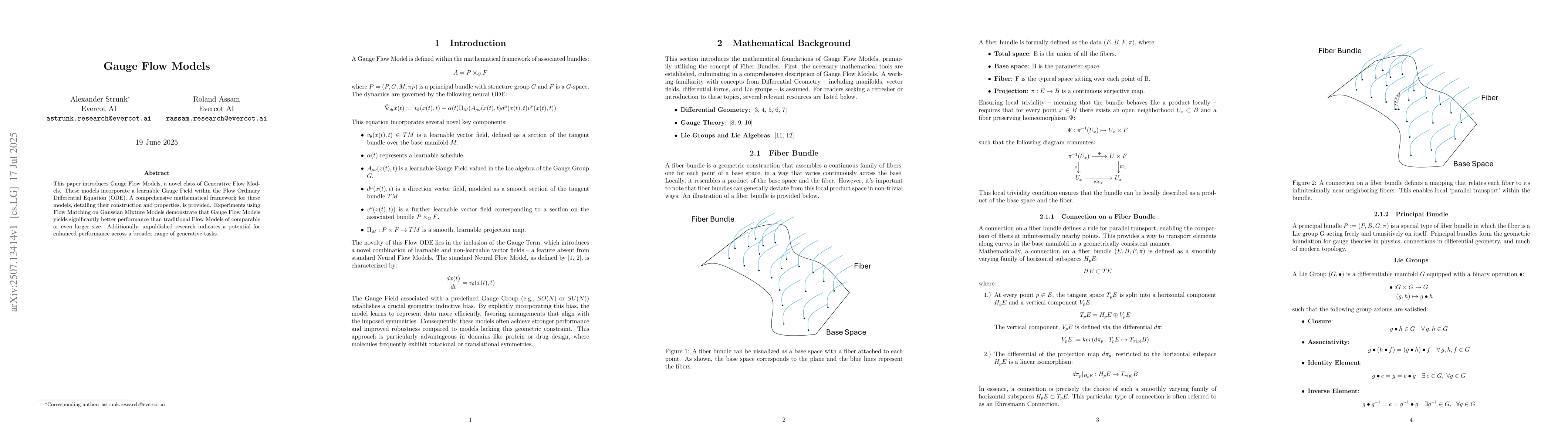 This paper introduces Gauge Flow Models, a novel class of Generative Flow Models. These models incorporate a learnable Gauge Field within the Flow Ordinary Differential Equation (ODE). A comprehensive mathematical framework for these models, detailing their construction and properties, is provided. Experiments using Flow Matching on Gaussian Mixture Models demonstrate that Gauge Flow Models yields significantly better performance than traditional Flow Models of comparable or even larger size. Additionally, unpublished research indicates a potential for enhanced performance across a broader range of generative tasks.