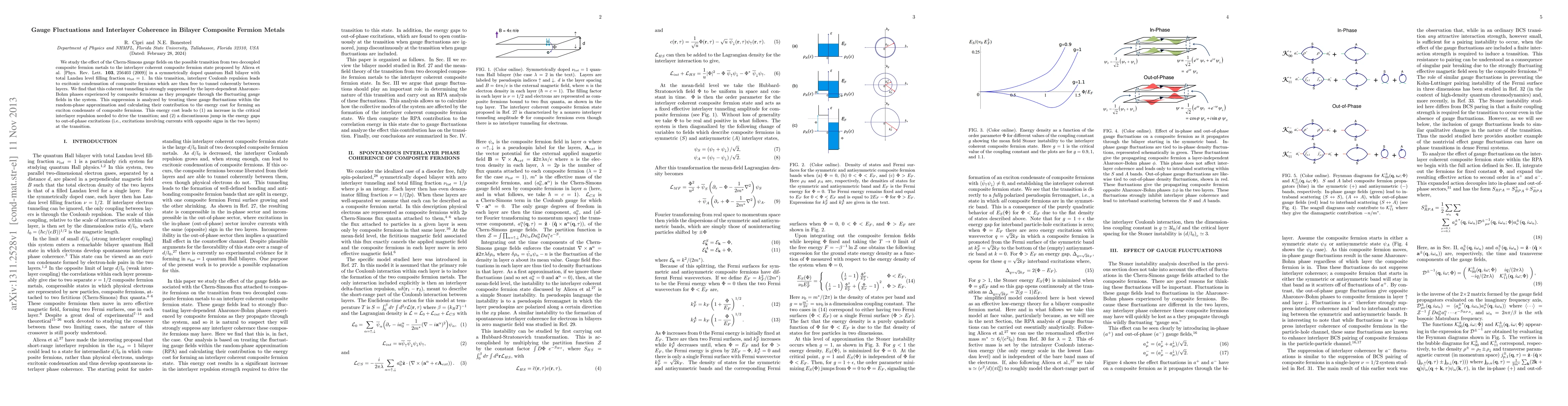 This paper investigates the impact of Chern-Simons gauge fields on the transition from decoupled composite fermion metals to an interlayer coherent composite fermion state in a quantum Hall bilayer. The study reveals that gauge fluctuations significantly suppress coherent tunneling between layers, leading to an increased critical interlayer repulsion for the transition and a discontinuous change in energy gaps for out-of-phase excitations.