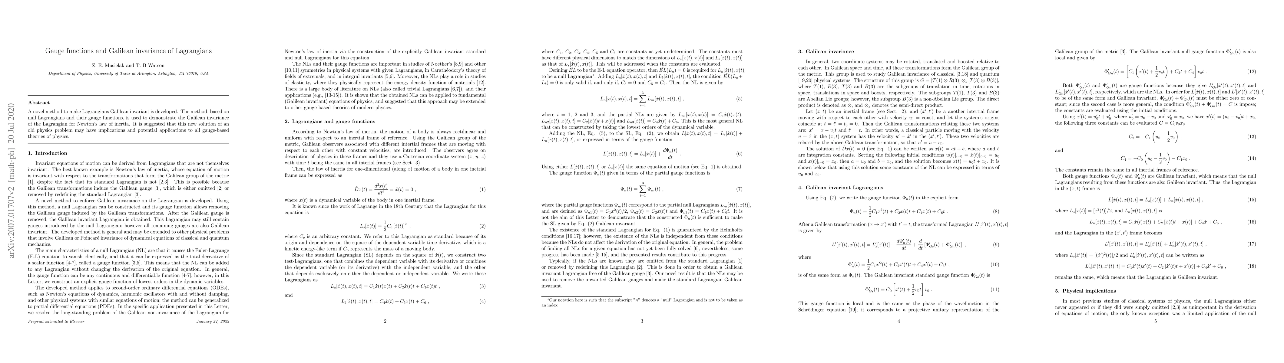 The research develops a novel method to make Lagrangians Galilean invariant using null Lagrangians and their gauge functions, demonstrated with Newton's law of inertia.