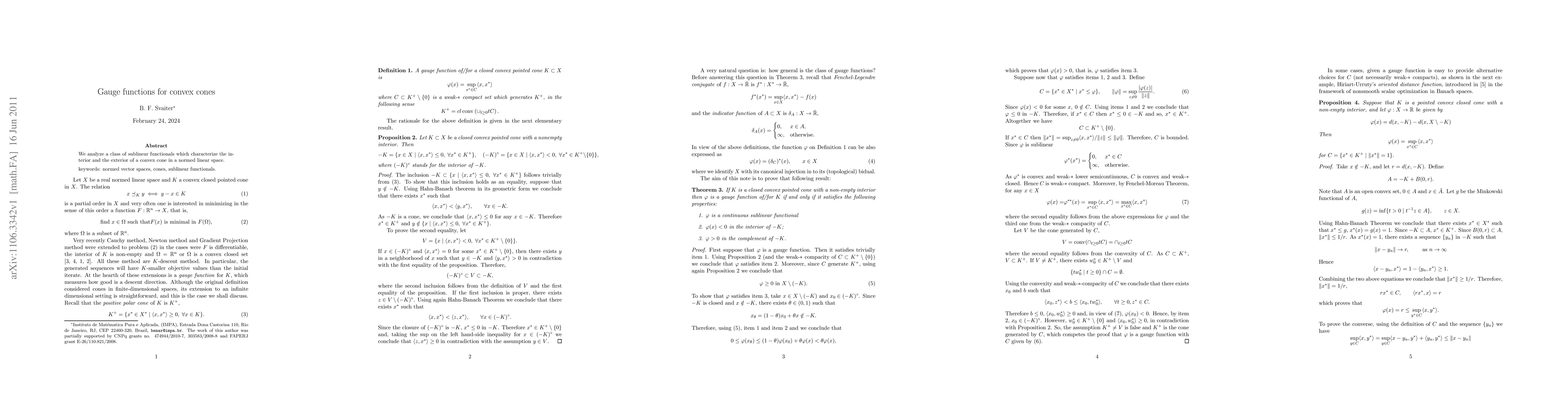 We analyze a class of sublinear functionals which characterize the interior and the exterior of a convex cone in a normed linear space.