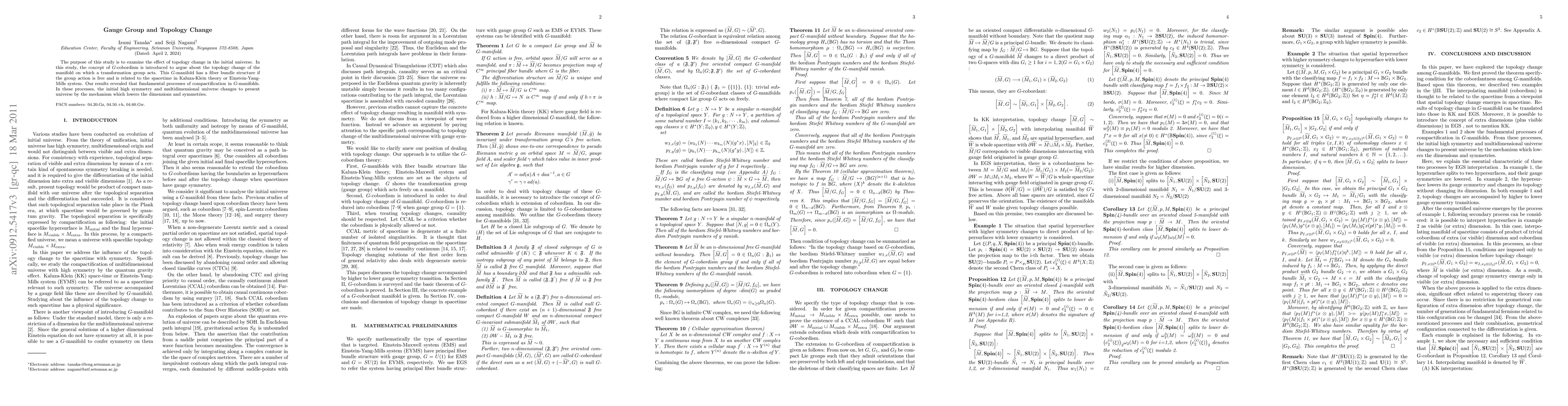 This study explores the impact of topology change in the early universe using $G$-cobordism to describe manifold transformations under group actions, revealing how high-symmetry, multidimensional structures compactify to form our present universe through dimension and symmetry reduction.