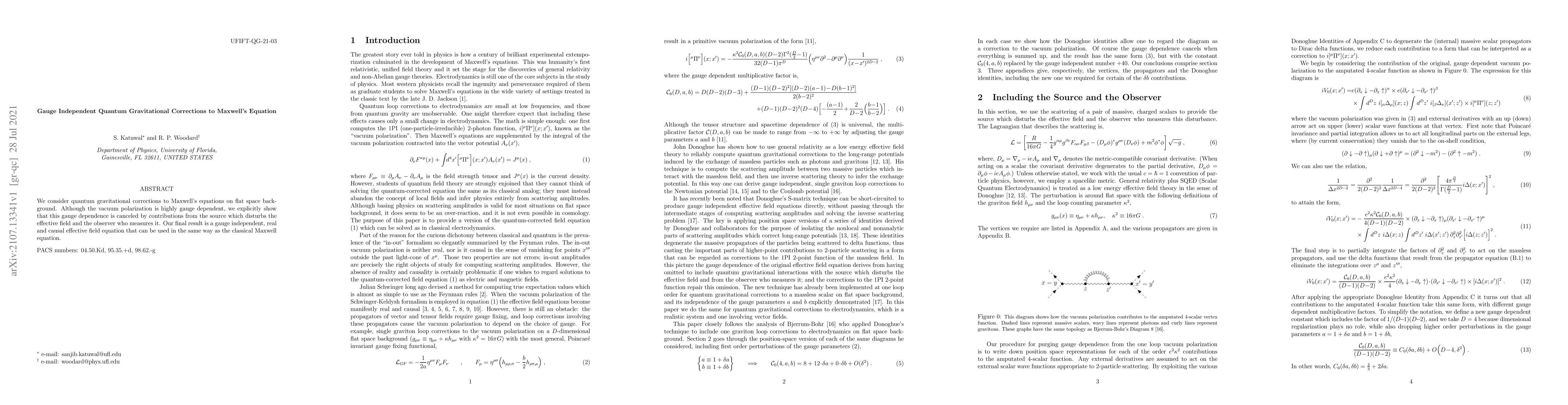 We consider quantum gravitational corrections to Maxwell's equations on flat space background. Although the vacuum polarization is highly gauge dependent, we explicitly show that this gauge dependence is canceled by contributions from the source which disturbs the effective field and the observer who measures it. Our final result is a gauge independent, real and causal effective field equation that can be used in the same way as the classical Maxwell equation.