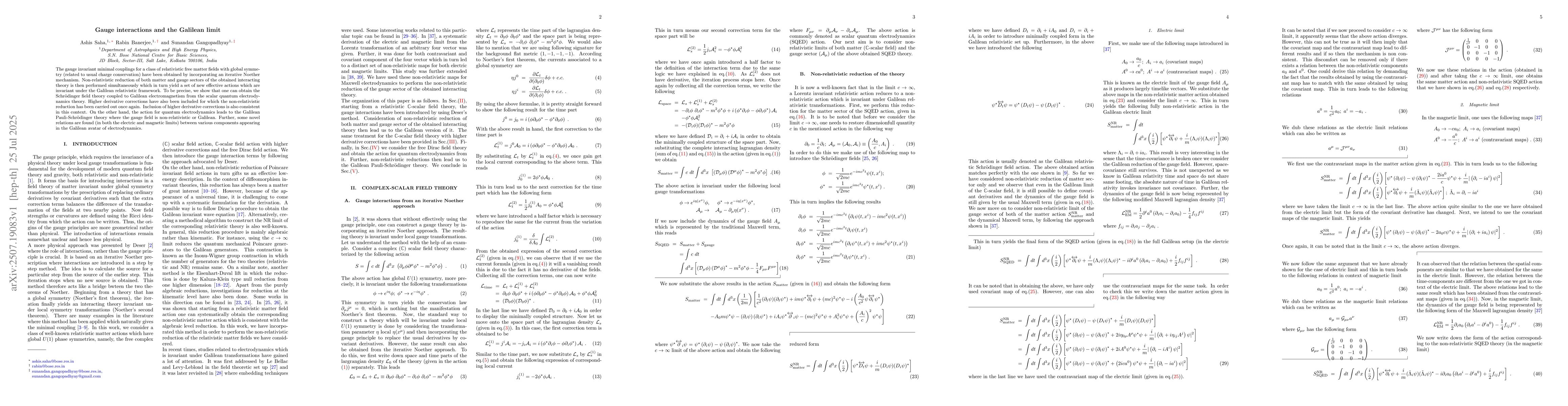 The gauge invariant minimal couplings for a class of relativistic free matter fields with global symmetry (related to usual charge conservation) have been obtained by incorporating an iterative Noether mechanism. Non-relativistic reduction of both matter and gauge sectors of the obtained interacting theory is then performed simultaneously which in turn yield a set of new effective actions which are invariant under the Galilean relativistic framework. To be precise, we show that one can obtain the Schr\"odinger field theory coupled to Galilean electromagnetism from the scalar quantum electrodynamics theory. Higher derivative corrections have also been included for which the non-relativistic reduction has been carried out once again. Inclusion of higher derivative corrections is also consistent in this context. On the other hand, the action for quantum electrodynamics leads to the Galilean Pauli-Schr\"odinger theory where the gauge field is non-relativistic or Galilean. Further, some novel relations are found (in both the electric and magnetic limits) between various components appearing in the Galilean avatar of electrodynamics.