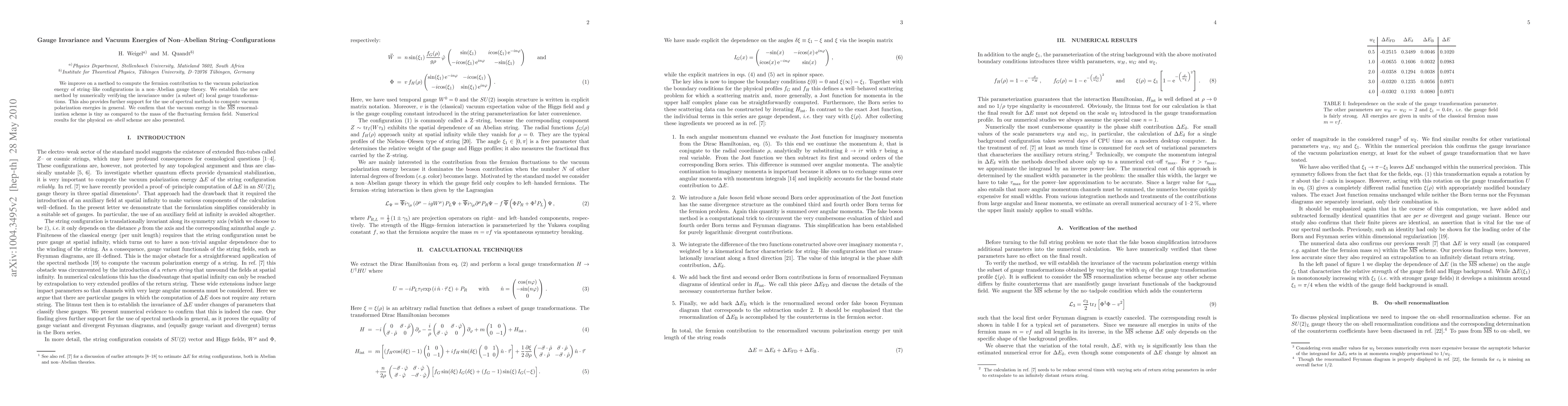 We improve on a method to compute the fermion contribution to the vacuum polarization energy of string-like configurations in a non-Abelian gauge theory. We establish the new method by numerically verifying the invariance under (a subset of) local gauge transformations. This also provides further support for the use of spectral methods to compute vacuum polarization energies in general. We confirm that the vacuum energy in the MS-bar renormalization scheme is tiny as compared to the mass of the fluctuating fermion field. Numerical results for the physical on-shell scheme are also presented.