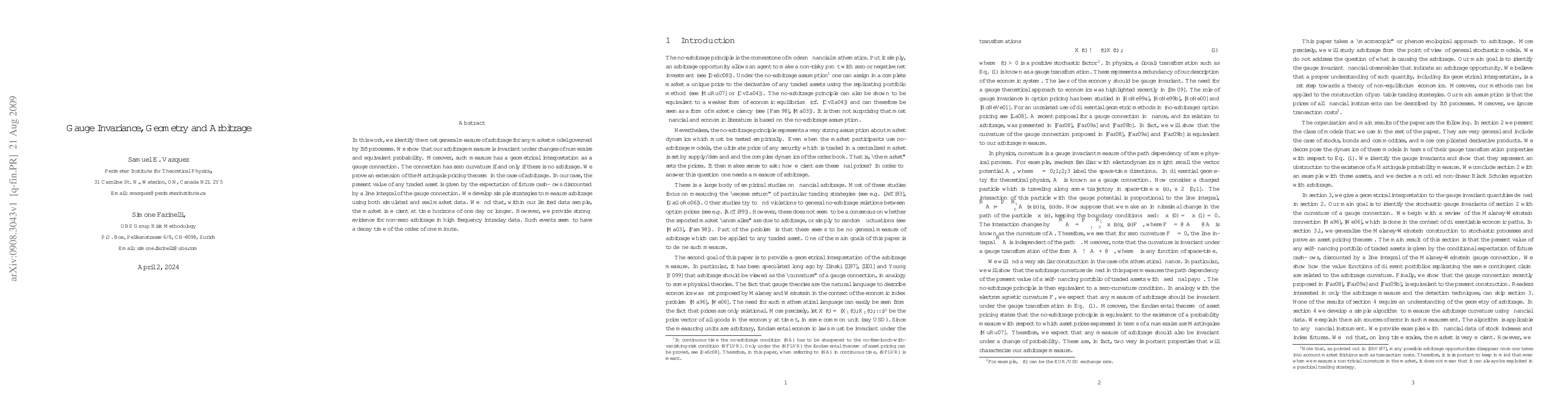 In this work, we identify the most general measure of arbitrage for any market model governed by It\^o processes. We show that our arbitrage measure is invariant under changes of num\'{e}raire and equivalent probability. Moreover, such measure has a geometrical interpretation as a gauge connection. The connection has zero curvature if and only if there is no arbitrage. We prove an extension of the Martingale pricing theorem in the case of arbitrage. In our case, the present value of any traded asset is given by the expectation of future cash-flows discounted by a line integral of the gauge connection. We develop simple strategies to measure arbitrage using both simulated and real market data. We find that, within our limited data sample, the market is efficient at time horizons of one day or longer. However, we provide strong evidence for non-zero arbitrage in high frequency intraday data. Such events seem to have a decay time of the order of one minute.