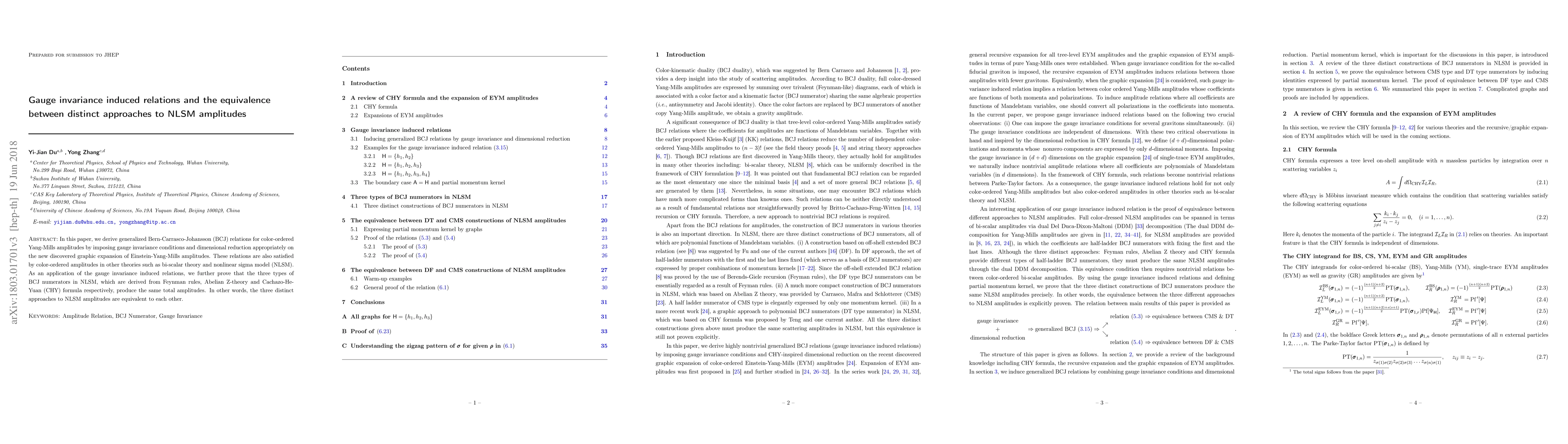 This paper establishes generalized Bern-Carrasco-Johansson (BCJ) relations for color-ordered Yang-Mills amplitudes through gauge invariance conditions and dimensional reduction, demonstrating their equivalence across various theories. It proves that distinct methods for calculating nonlinear sigma model (NLSM) amplitudes yield the same results, confirming their theoretical equivalence.