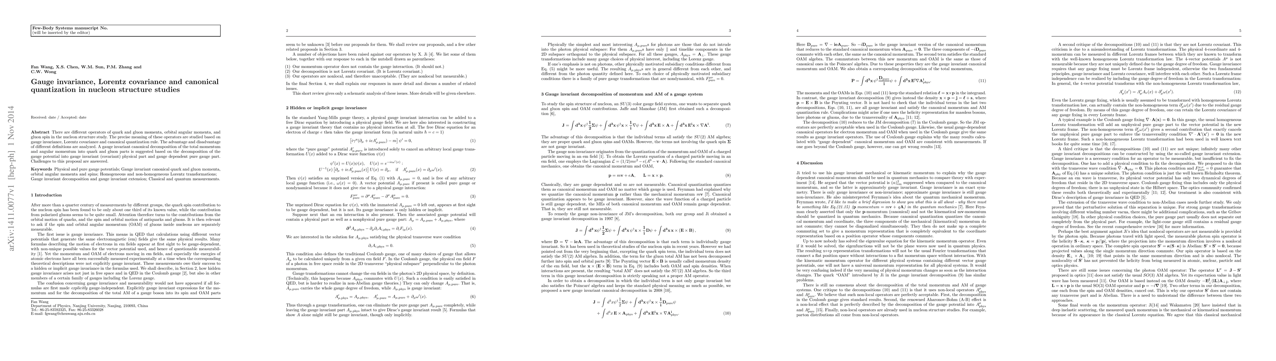 There are different operators of quark and gluon momenta, orbital angular momenta, and gluon spin in the nucleon structure study. The precise meaning of these operators are studied based on gauge invariance, Lorentz covariance and canonical quantization rule. The advantage and disadvantage of different definitions are analyzed. A gauge invariant canonical decomposition of the total momentum and angular momentum into quark and gluon parts is suggested based on the decomposition of the gauge potential into gauge invariant (covariant) physical part and gauge dependent pure gauge part. Challenges to this proposal are answered. \keywords{Physical and pure gauge potentials; Gauge invariant canonical quark and gluon momenta, orbital angular momenta and spins; Homogeneous and non-homogeneous Lorentz transformations; Gauge invariant decomposition and gauge invariant extension; Classical and quantum measurements.