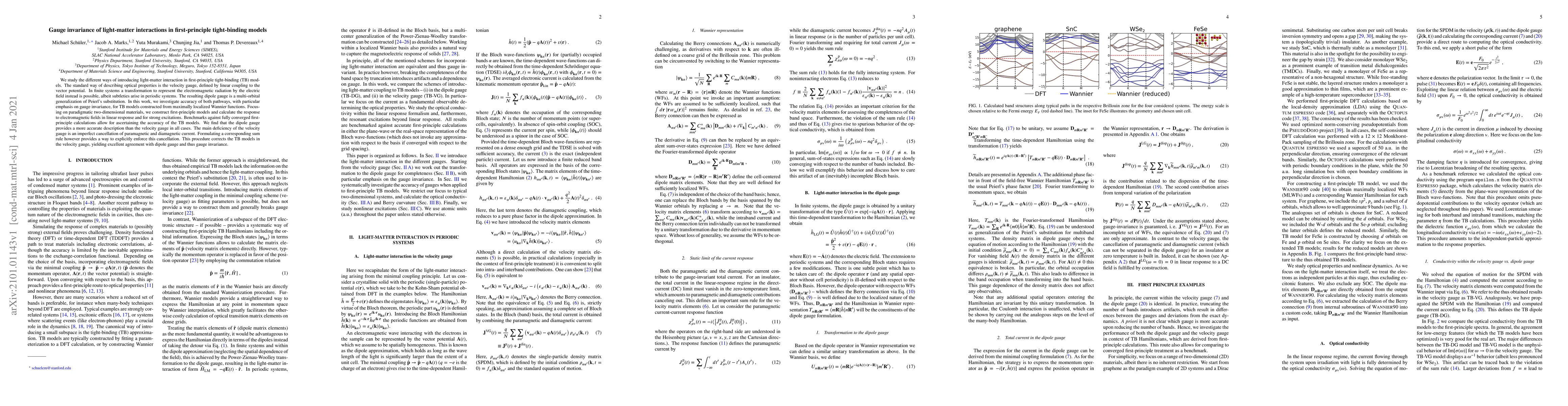 This paper investigates the accuracy of light-matter interaction descriptions in first-principle tight-binding models, comparing the velocity gauge and the dipole gauge. The dipole gauge is found to provide a more accurate description, while the velocity gauge's main issue is imperfect cancellation of paramagnetic and diamagnetic currents, which can be corrected by enforcing a sum rule, achieving gauge invariance.