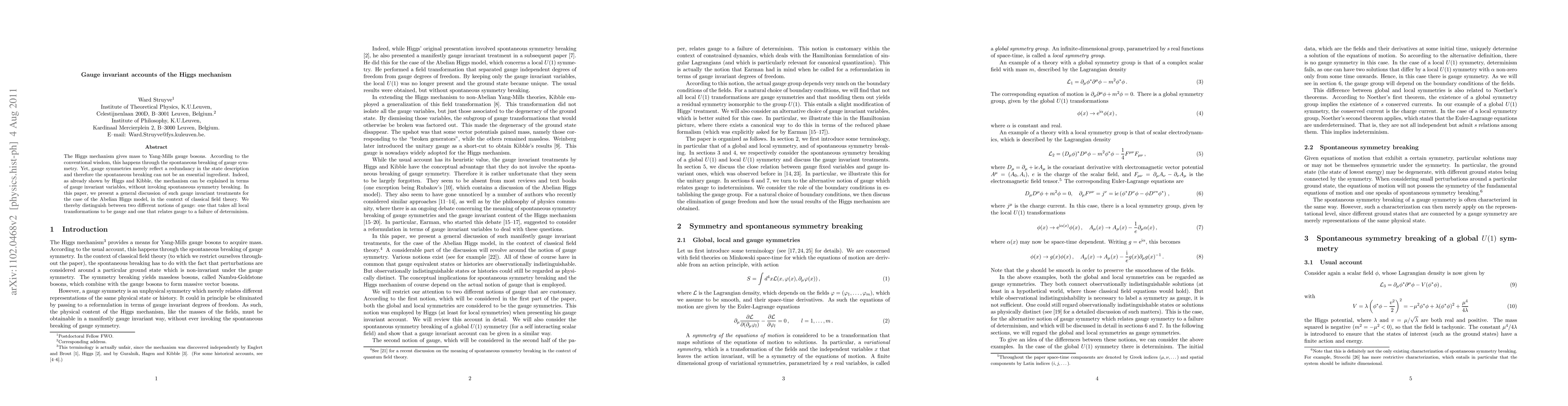 This paper explores gauge invariant explanations of the Higgs mechanism, demonstrating that mass generation for gauge bosons can occur without invoking spontaneous symmetry breaking. It discusses the Abelian Higgs model in classical field theory, distinguishing between two interpretations of gauge: one encompassing all local transformations and another linking gauge to determinism failure.