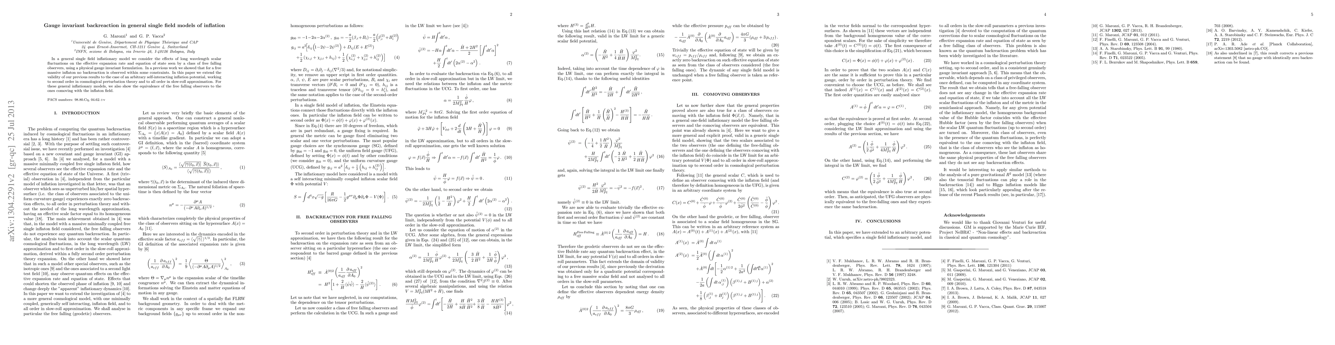 This paper investigates the gauge invariant backreaction of long wavelength scalar fluctuations on the effective expansion rate in general single field inflationary models, extending previous results to arbitrary self-interacting potentials and demonstrating equivalence between free falling and comoving observers. The study works to second order in perturbation theory and all orders in the slow-roll approximation.