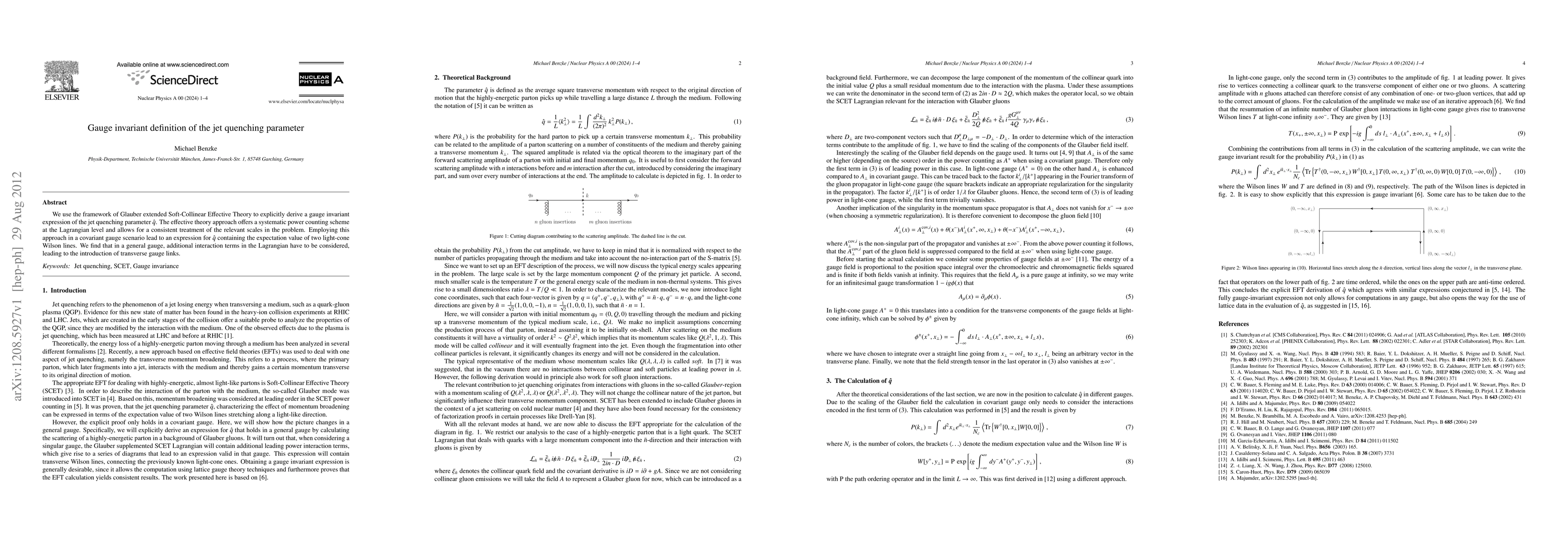 This paper derives a gauge invariant expression for the jet quenching parameter $\hat{q}$ using Glauber extended Soft-Collinear Effective Theory, revealing the dependence on light-cone Wilson lines and introducing transverse gauge links in general gauges.