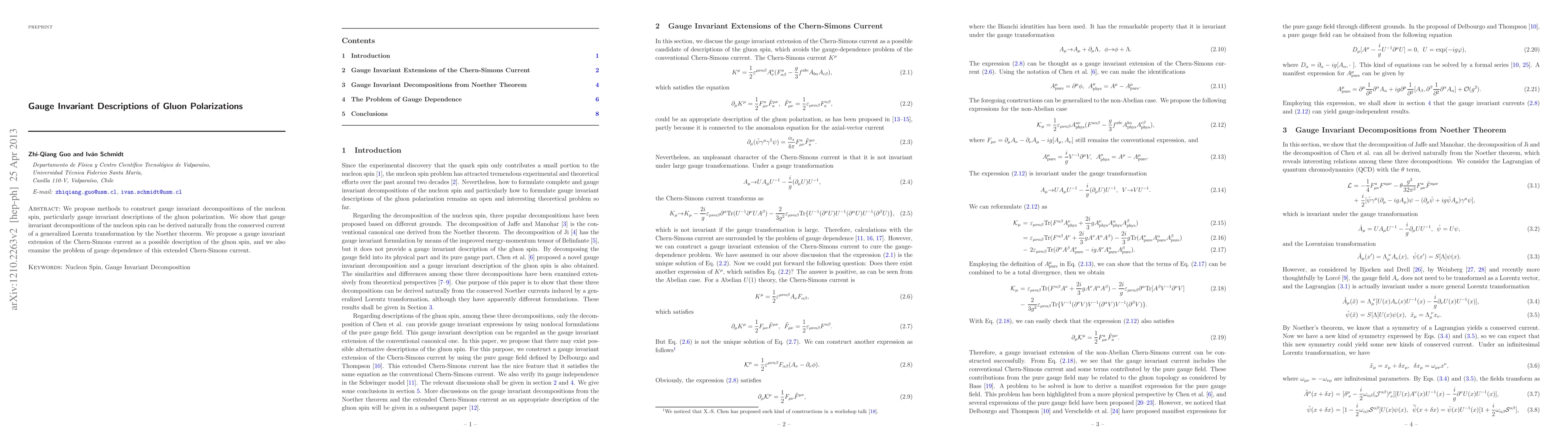 The paper introduces a novel gauge invariant extension of the Chern-Simons current and demonstrates its gauge independence, providing a framework for describing gluon spin within the context of QCD.